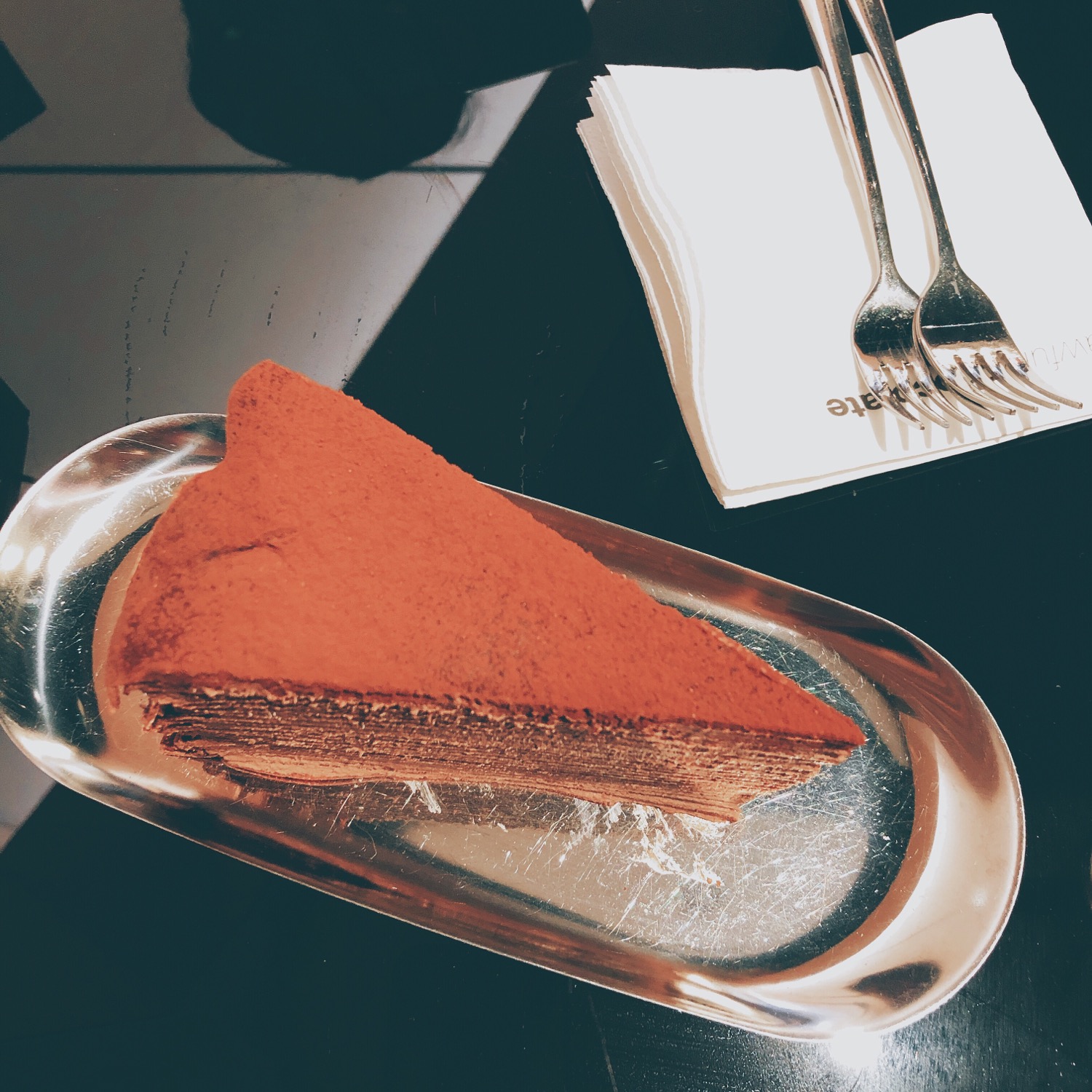 | 黑巧克力千层 | 在超级巧克力和千层里选了这个 千层还是没有Lady M家做的细腻 口感比较粗糙 容易腻