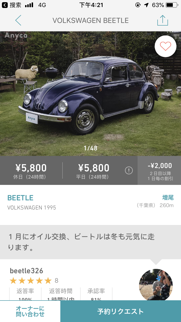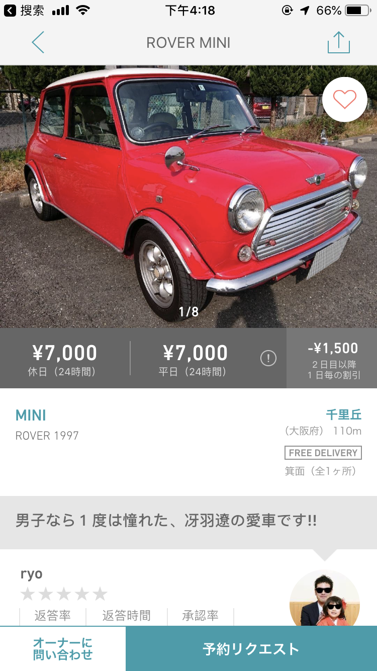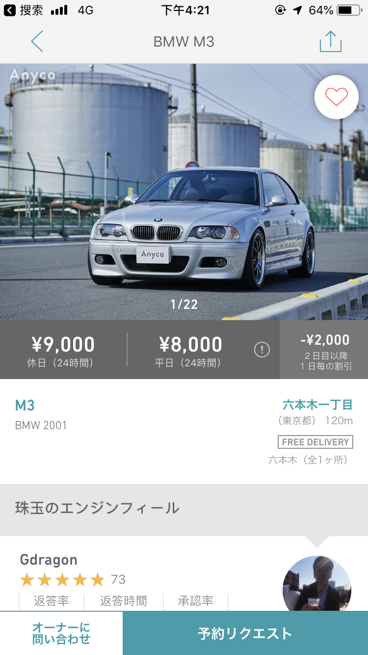 问了一下在Anyca平台上向外出租自家用车的朋友,他表示体验还可以,基本不用担心车会被客人损坏以及相关的信任问题,通常也不需要打电话,大家靠App内的通讯联络。
