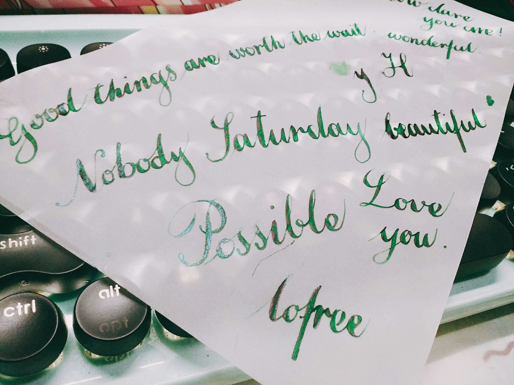 我发现我买的这个绿色墨水好容易干啊 加了一点蓝色金粉 还会出shine 赚到了