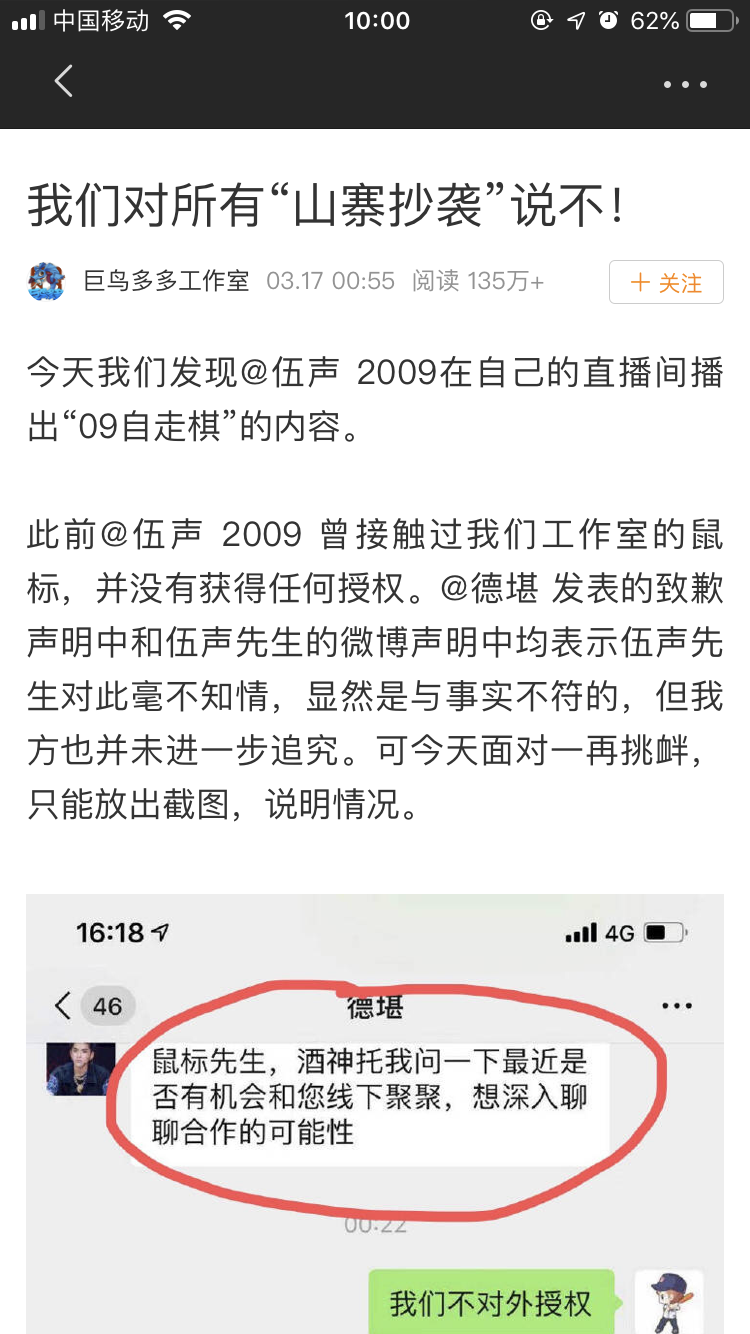 巨鸟多多凌晨发布声明,表示伍声(2009)山寨抄袭了自走棋。