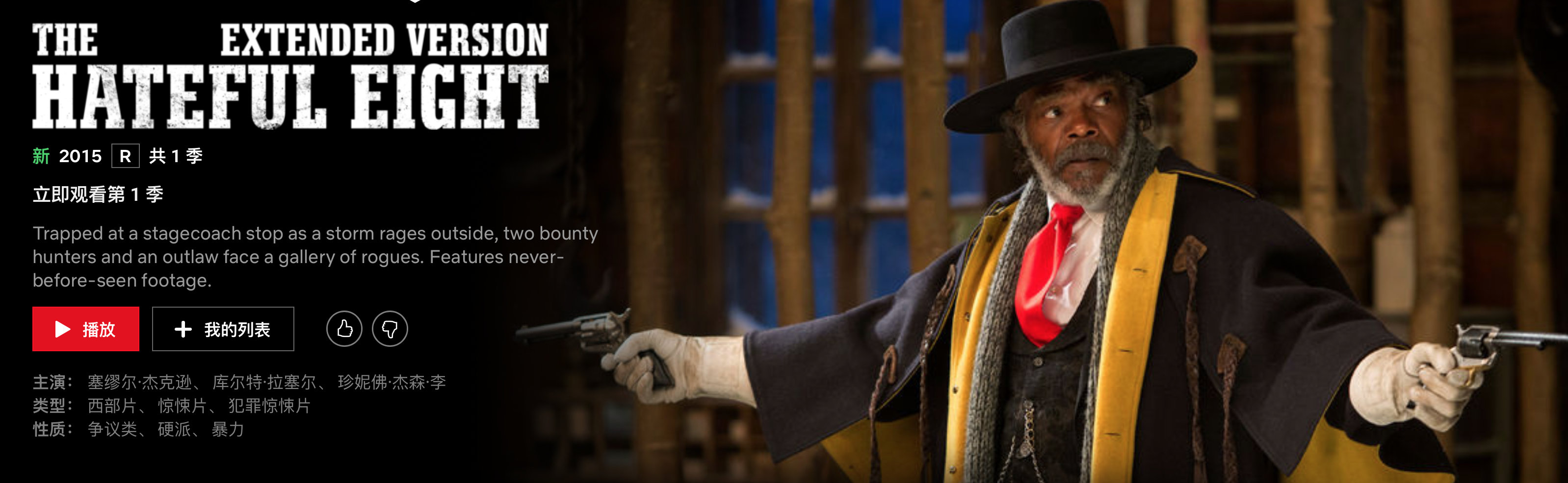 昆汀·塔伦蒂诺表示Netflix找到他,询问[八恶人]是否有一些未曝光片段可增加进正片,做成3/4集的迷你剧。昆汀欣然同意,并找到剪辑师弗雷德·拉斯金,将原影片部分镜头顺序做了调整,增加25分钟左右的未曝光片段,剪辑出了一套4集迷你剧。