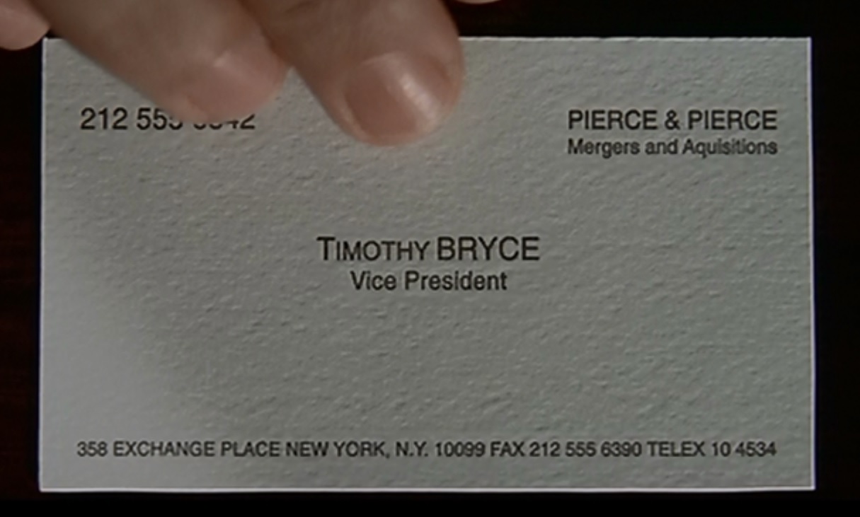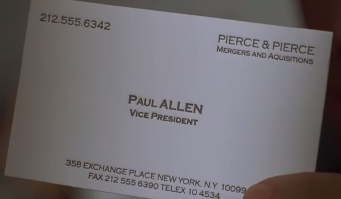 4.重头戏是Paul Allen。名片的字体是Copperplate Gothic,这种字体被认为代表金钱、奢华和力量,常被用于银行和律师事务所的标牌上。这也和主角的人设相符。