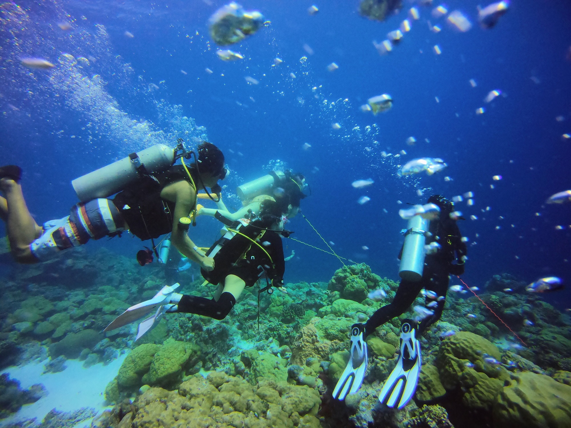 一定要说的是潜乌龙水道,太惊心动魄了,流太大,导致我直接被吹走,分分钟飞出去好远,还好潜导追上来抓住我。我和他比手势说我ok,于是我们两个抓着地慢慢匍匐前进的爬回去😨没有准备潜水手套,手也被划破。一起潜过水才知道什么是生死之交