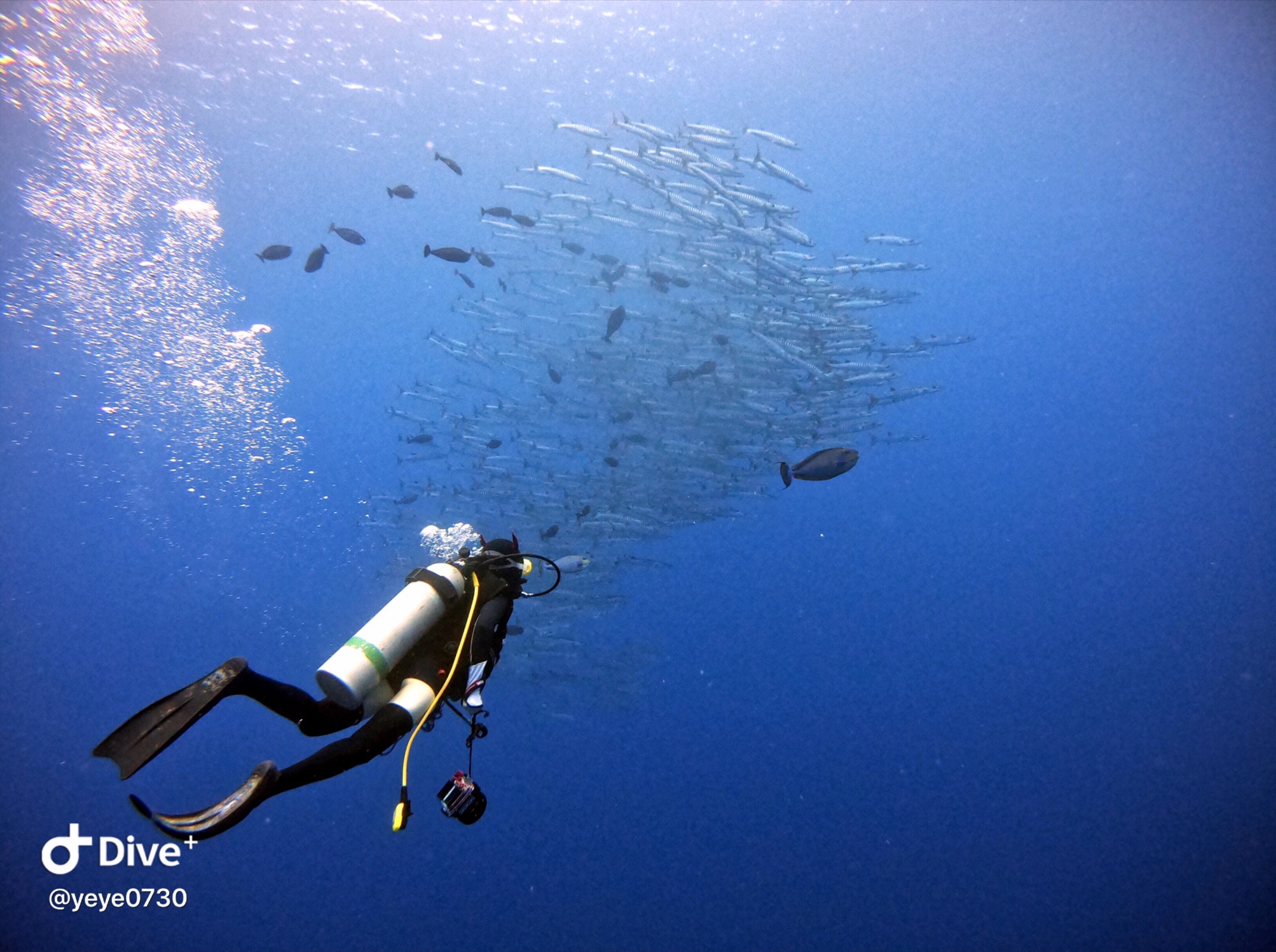 之后的每一潜都能看到十几二十条🦈,第一次看到数量这么多鲨鱼🦈吓得大气都不敢喘。下去时气瓶有200气,上来居然还能剩90😳也是破了最省气的记录