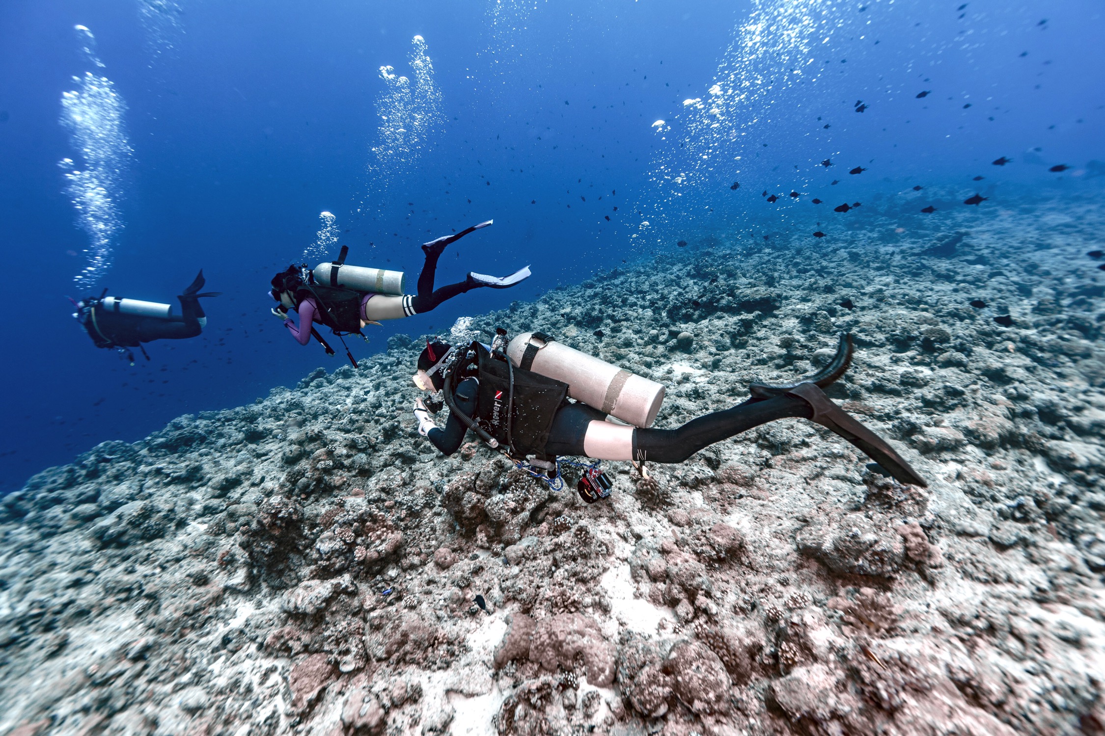两个点的水流都很大,需要用流钩固定住身体才不会被冲走。看图1,2的气泡就知道水流有多大了。