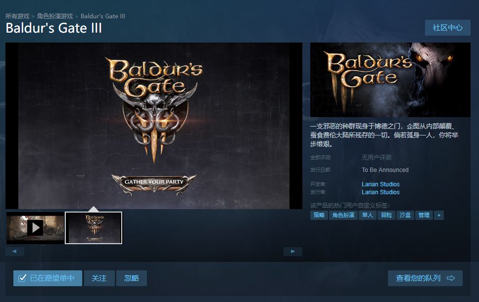 《博德之门3》目前已经上架了Steam平台,确认支持简体中文。根据Steam页面,《博德之门3》支持单人、多人、在线多人、本地多人、合作、在线合作、本地本作、共有/分屏和跨平台联机。