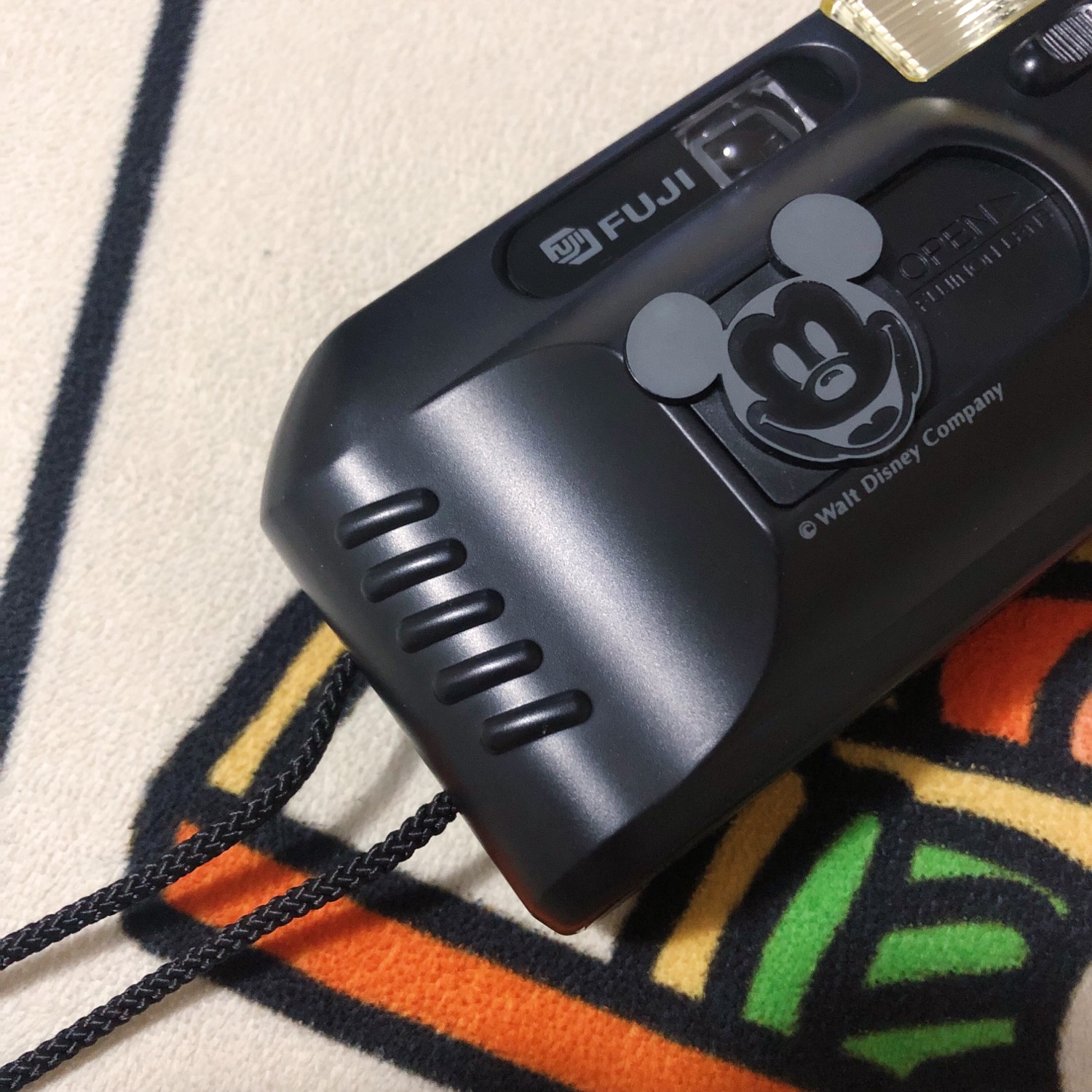 ⭐️相机镜头盖为推拉式结构 镜头盖有雕刻着米奇的头像 注意嗷 头像不是平面的 有凹凸感!!!果然富士的做工扎实 用料好