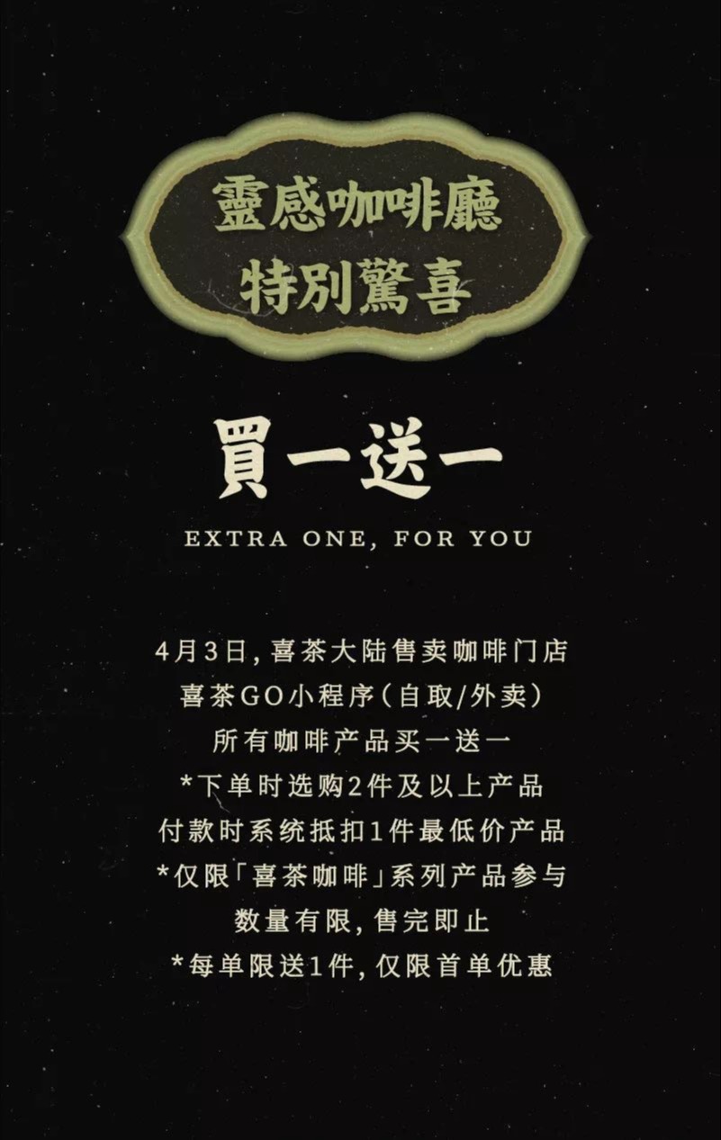 划重点,喜茶新品买一送一☕️