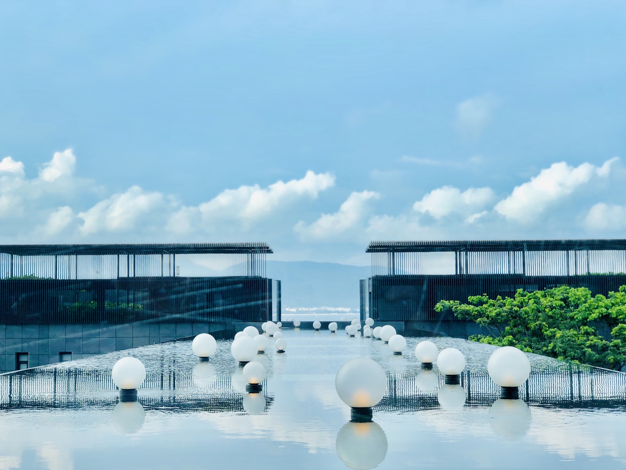 很多人对太阳湾柏悦的第一印象都是因为看到酒店大堂水中灯的景观照。处于大堂正中间窗外的水中灯设计,是酒店极致对称设计理念最直接的表达。