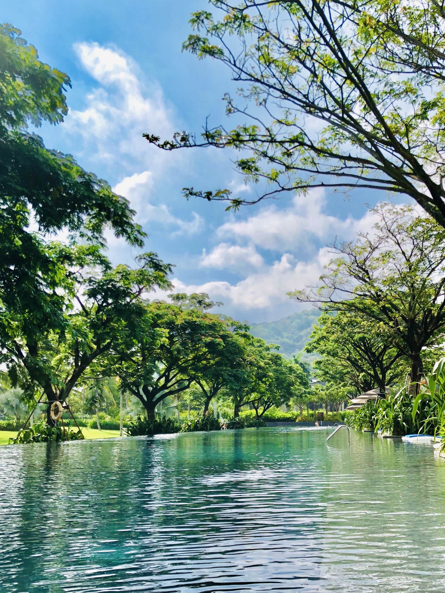 酒店一共有3个室外泳池和1个室内泳池。最喜欢130米长的太阳湾泳池,游到最远处的无边际池边,可以看到酒店的别墅区和远山。游累了在泳池边躺着看书或小憩,可以在这儿呆上一整天。值得表扬的是泳池服务员的意识,几乎每次下水再上岸,服务员都重新整理好了躺椅、浴巾和拖鞋。