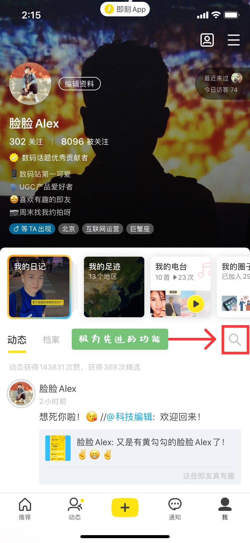即刻7.0版本 新增极为先进的个人动态搜索功能,终于不用手翻到两年前的动态啦✌️