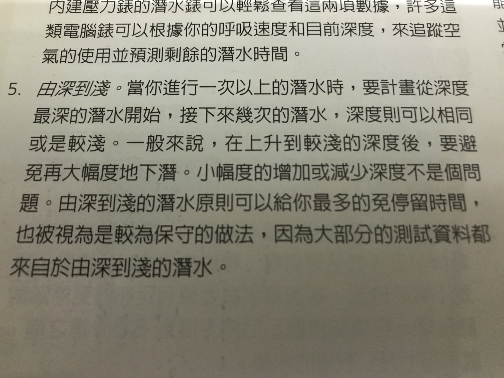 1. 历史上无论是美国海军还是各个商业潜水机构都未曾禁止过reverse dive profiles (由浅到深的重复潜水计划)。
