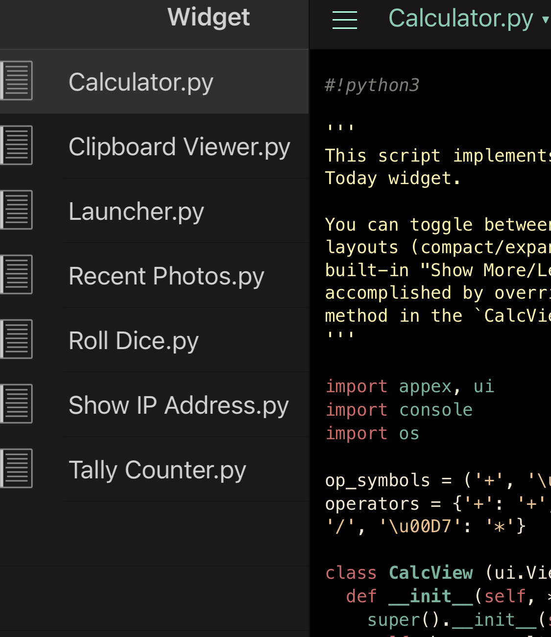 Pythonista也是一款不错的iOS软件,也支持用Python写负一屏小组件(图5),我也曾经很希望它可以支持桌面小组件,这样就能用Python写它,查到有人去官方论坛上去问过,作者团队回复说Pythonista负一屏组件的开发与桌面小组件的开发完全是两码事,目前来看实现起来难度太大,因为新的小部件似乎只支持 SwiftUI,而pythonista的小部件是objc_util 写的。