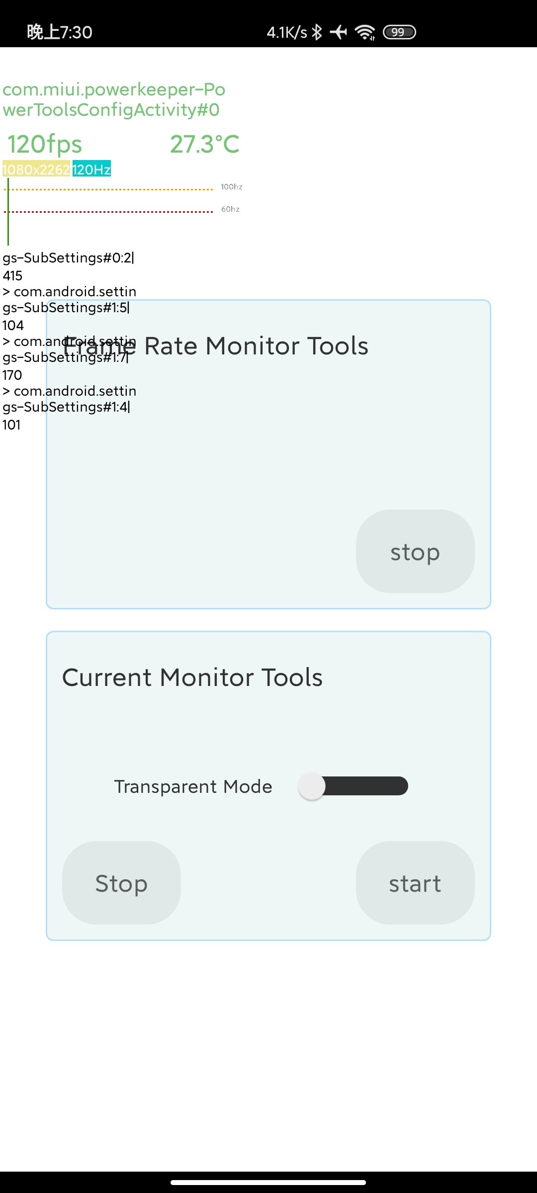 Pixel 系列会在开发者选项中给出一个「强制 90Hz 的刷新率」选项,但 MIUI 12 仅多一「功耗检测」工具来开启悬浮窗查看当前屏幕的刷新率。以这个为参考依据,我迫切需要一个方法来强制我的红米 K30 5G 开启全局 120Hz 刷新率,不要任何出于功耗考量的「智能」切换。