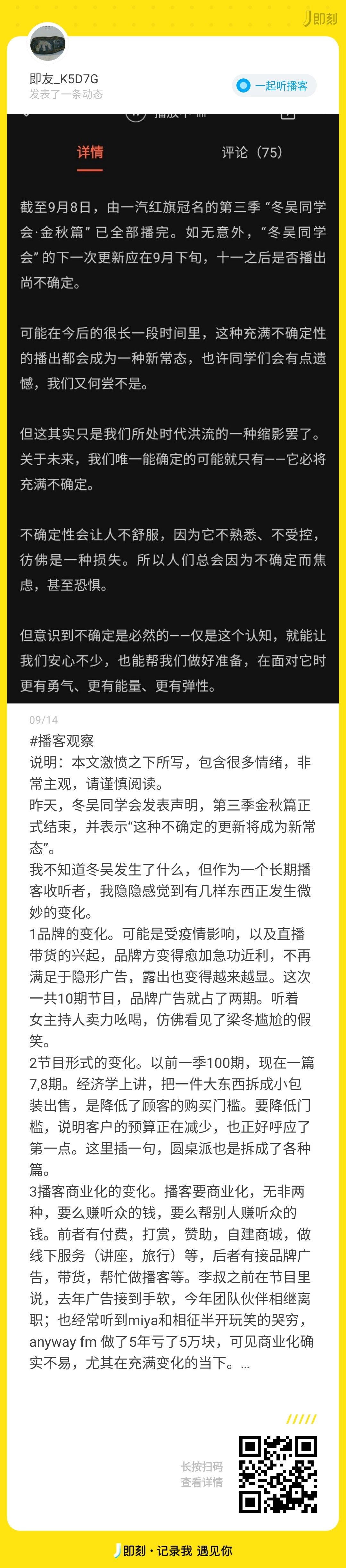 有很多很不错的播客,更新了几期之后就没有了下文;也有一些播客,无法保证更新频率。