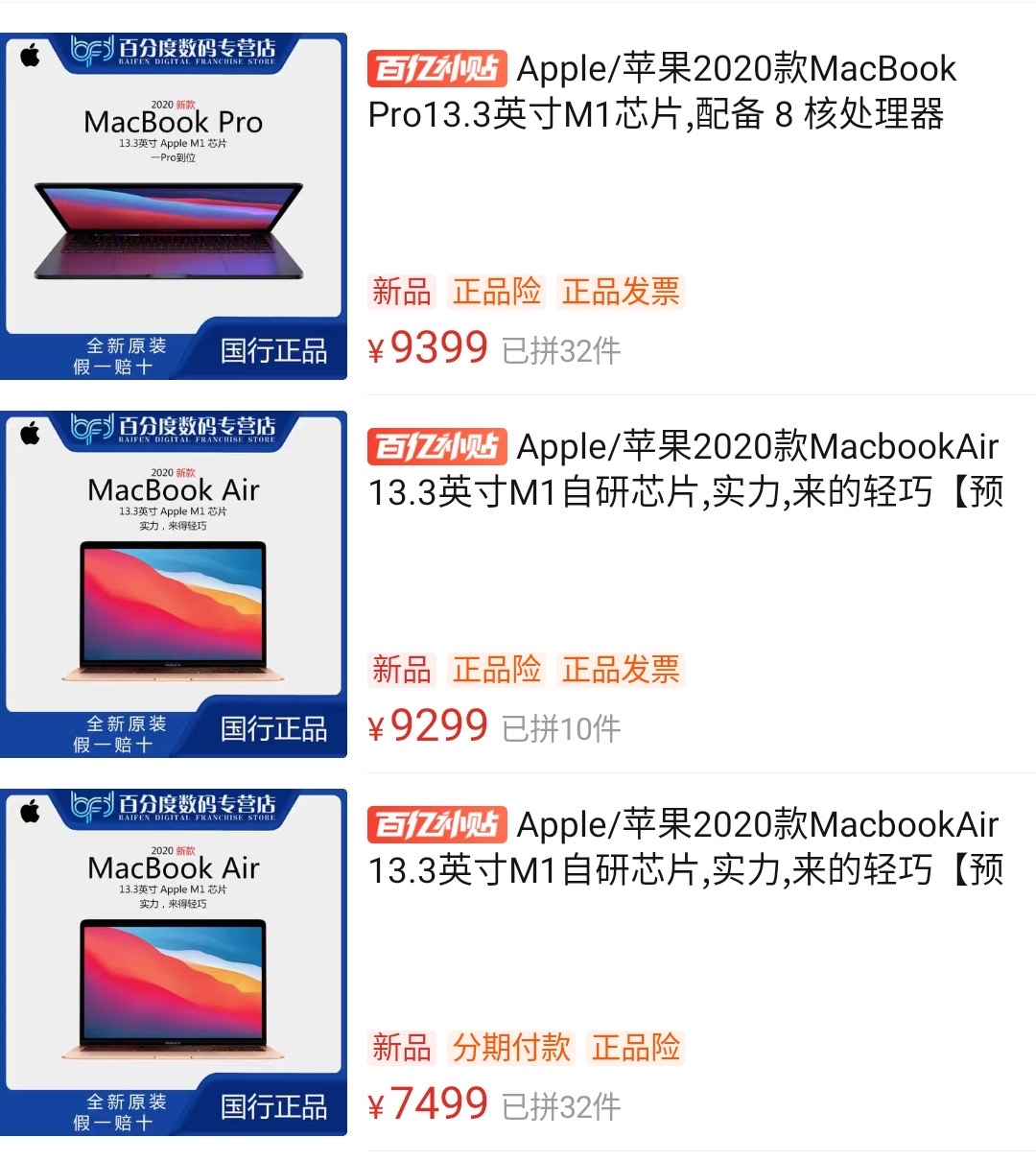 搭载 M1 芯片的 MacBook Air/Pro 已于昨日正式发售,现在这两款新品均已上架拼多多百亿补贴专区。