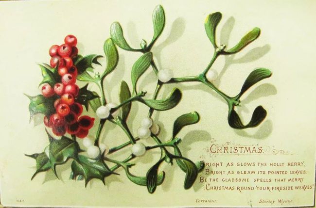与一开始就与基督教联系密切的欧洲冬青不同,欧洲各地的传说中都有槲寄生的身影。在古希腊神话中,它是“生命中的金枝”;在北欧神话中,它代表“爱、和平、宽恕”;在凯尔特文化中,它是“栎树之水”,德鲁伊会在特殊的日子举行采集槲寄生的盛大仪式。约19世纪初,槲寄生作为圣诞节传统才从英国逐渐影响到全世界,在槲寄生下接吻的习俗也是来源于英国的圣诞习俗。圣诞节欧洲使用的大多为白果槲寄生(Viscum album,又叫欧洲槲寄生)。而在北美,槲寄生并不是本土植物,因此使用的是与槲寄生属近缘的肉穗寄生属的北美肉穗寄生(Phoradendron leucarpum)。我国大部分省区都分布着槲寄生(Viscum coloratum)。杭州也有很多,曾经在浙博孤山馆区看到过,冬天光秃秃的书上一团像鸟窝的绿色,很容易发现。槲寄生是半寄生植物,在吸取宿主植物营养的同时自己也会进行光合作用。根据寄生植物的不同,槲寄生果实的颜色也有区别。圣诞节前后正是槲寄生的果期,不妨趁着周末去西湖边逛逛,也许不经意抬头,你就已经站在了槲寄生的下面。