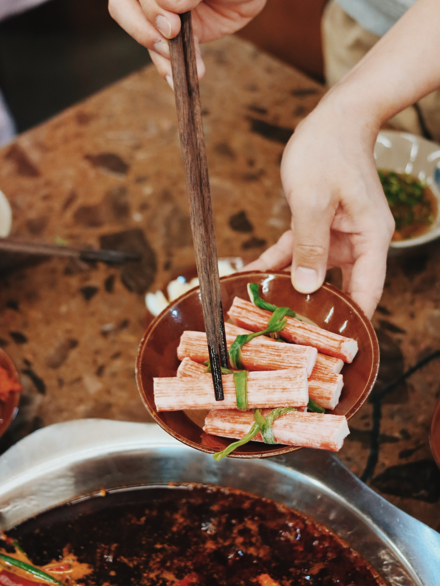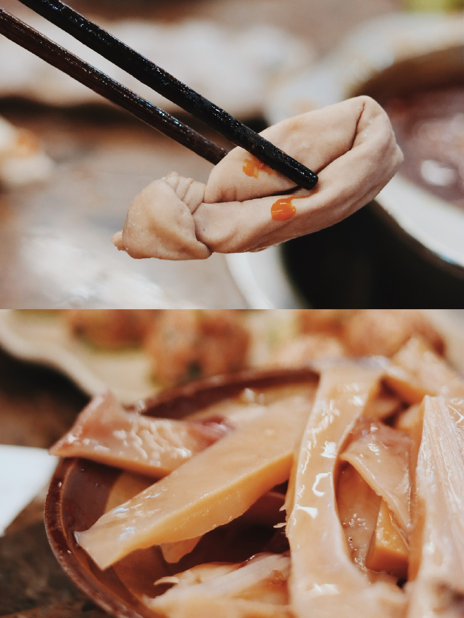 🥘「凉粉」,鸭血售罄这顿火锅就不完整了,还好有米凉粉。我真的好爱烫这些软软滑滑的食材。吸足锅底香气,口感糯糯的很好吃。