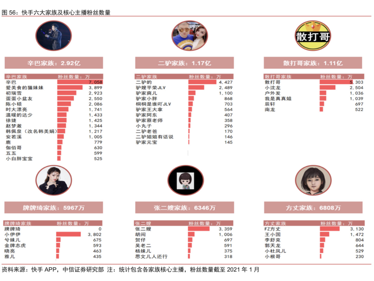 快手六大家族及核心主播粉丝数量list