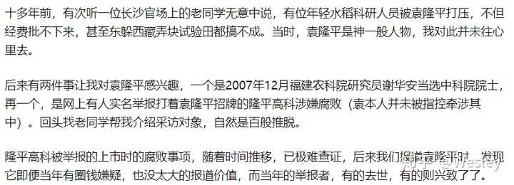 一个热心朋友刨根问底找到有人驳黄章晋几年前在大象工会发的《袁隆平神话》。