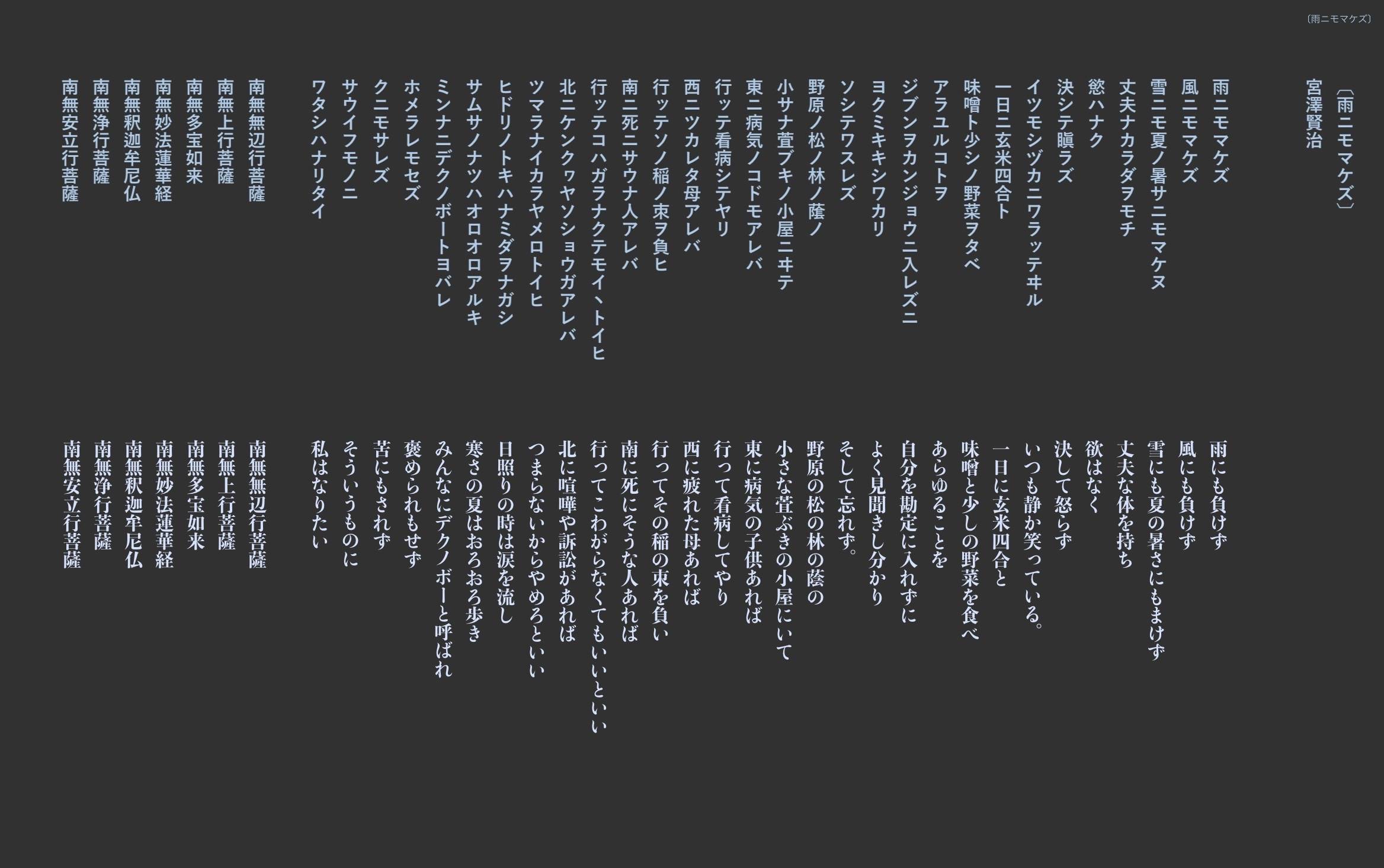 针对宫泽贤治到底是想写「ヒドリ」还是「ヒデリ」这一问题,还有人专门写了一本书,于2016年出版,书名是『「ヒドリ」か、「ヒデリ」かー宮沢賢治「雨ニモマケズ」中の一語をめぐって』(日本诗人入泽康夫 著)。