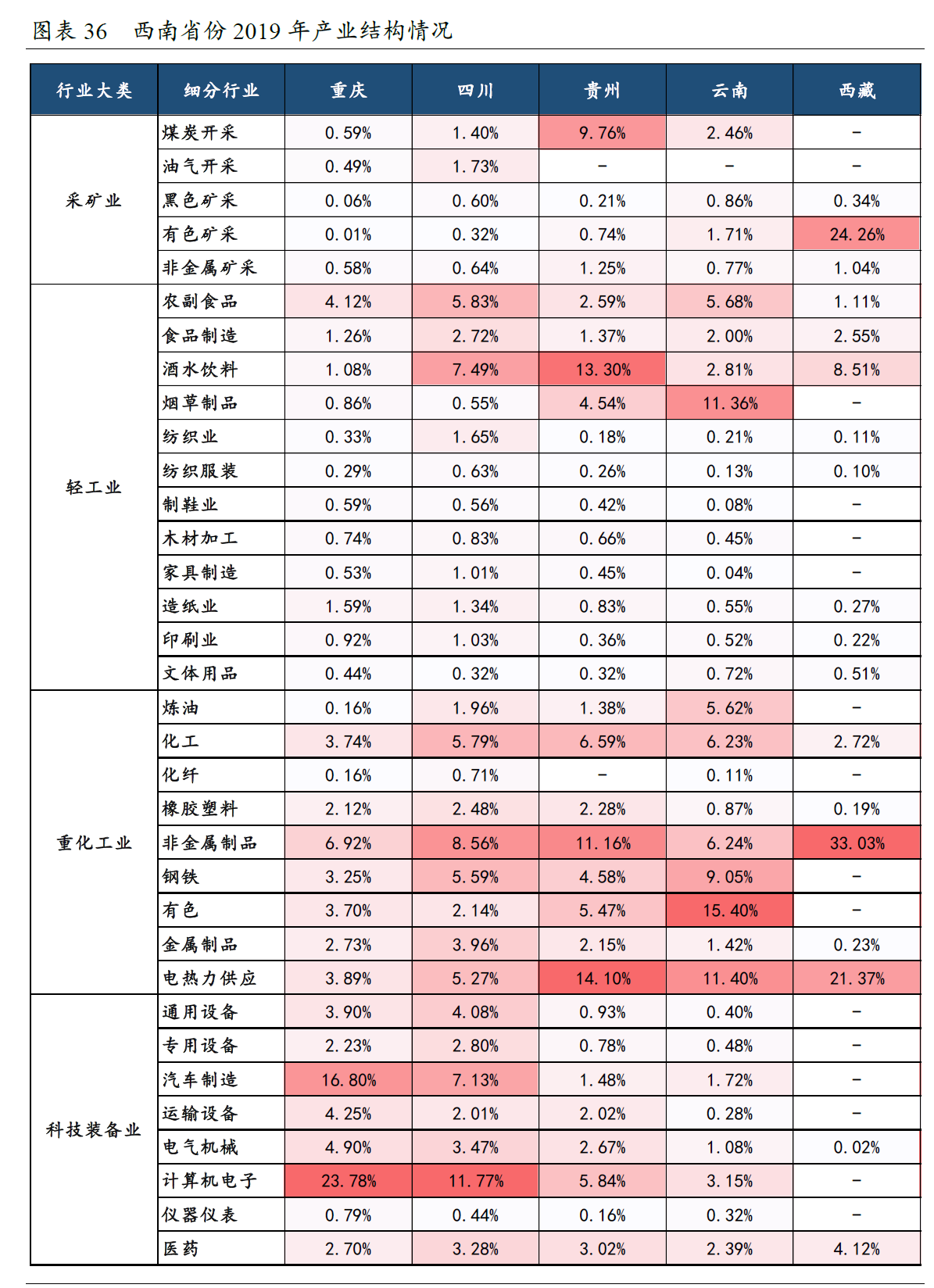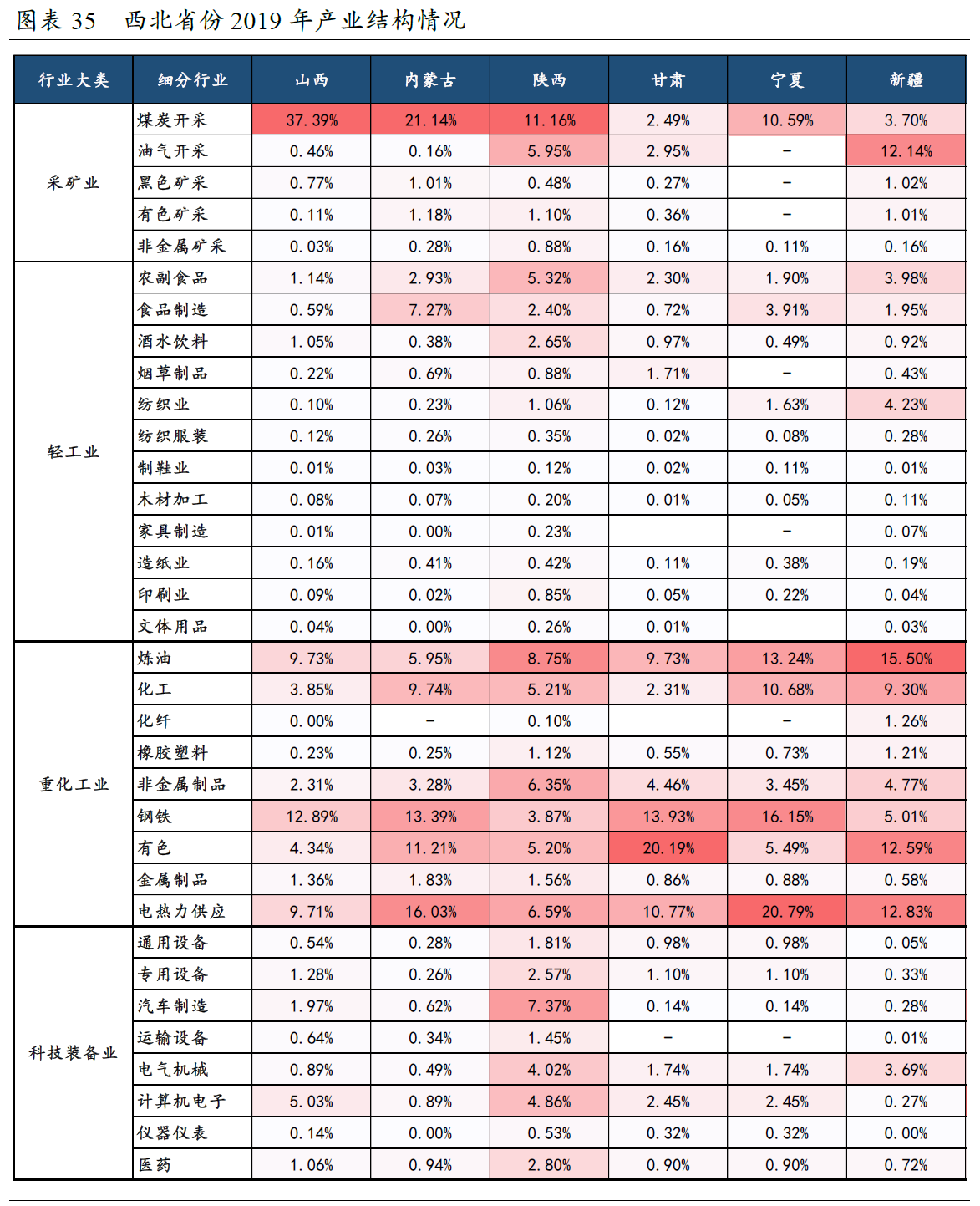 ▪️西北地区产业【高度依赖采矿业和重化工业,科技装备业占比极低】,产业结构升级任重道远。