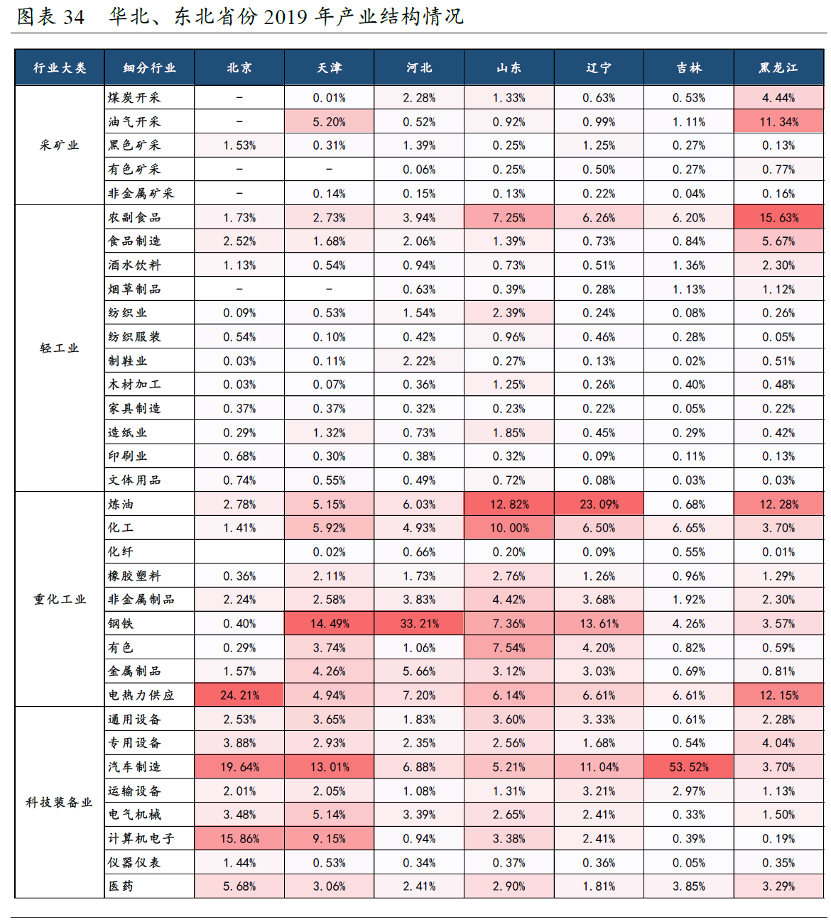 ▪️华北、东北地区产业结构上仍【高度依赖重化工业,甚至有加强的趋势】,科技装备业方面主要以汽车制造为主,设备制造业相对薄弱。