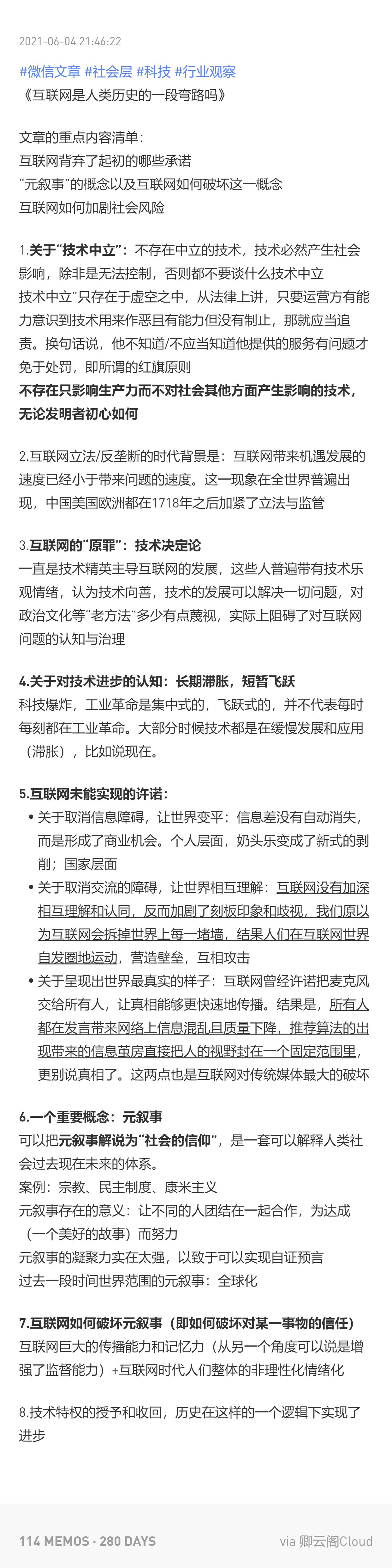 之前看利维坦文章里有一句话,大意是单靠医学的进步是无法带来健康的,社会对人的关怀和生活节奏才是健康更重要的因素。一样的道理,不应当寄希望于技术来解决一切问题,也不能用“技术中立”来推辞。