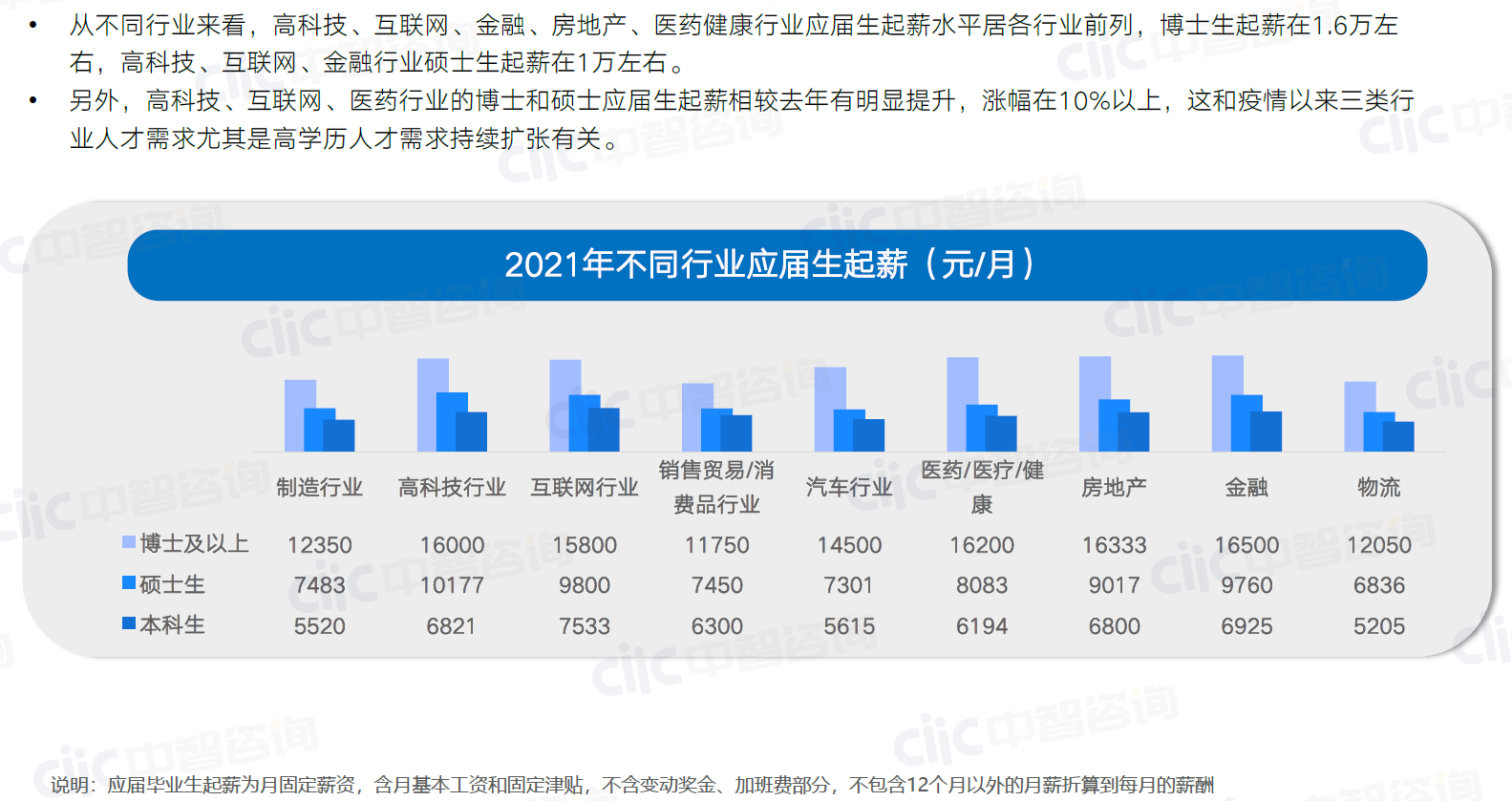 2021年应届生薪酬对比