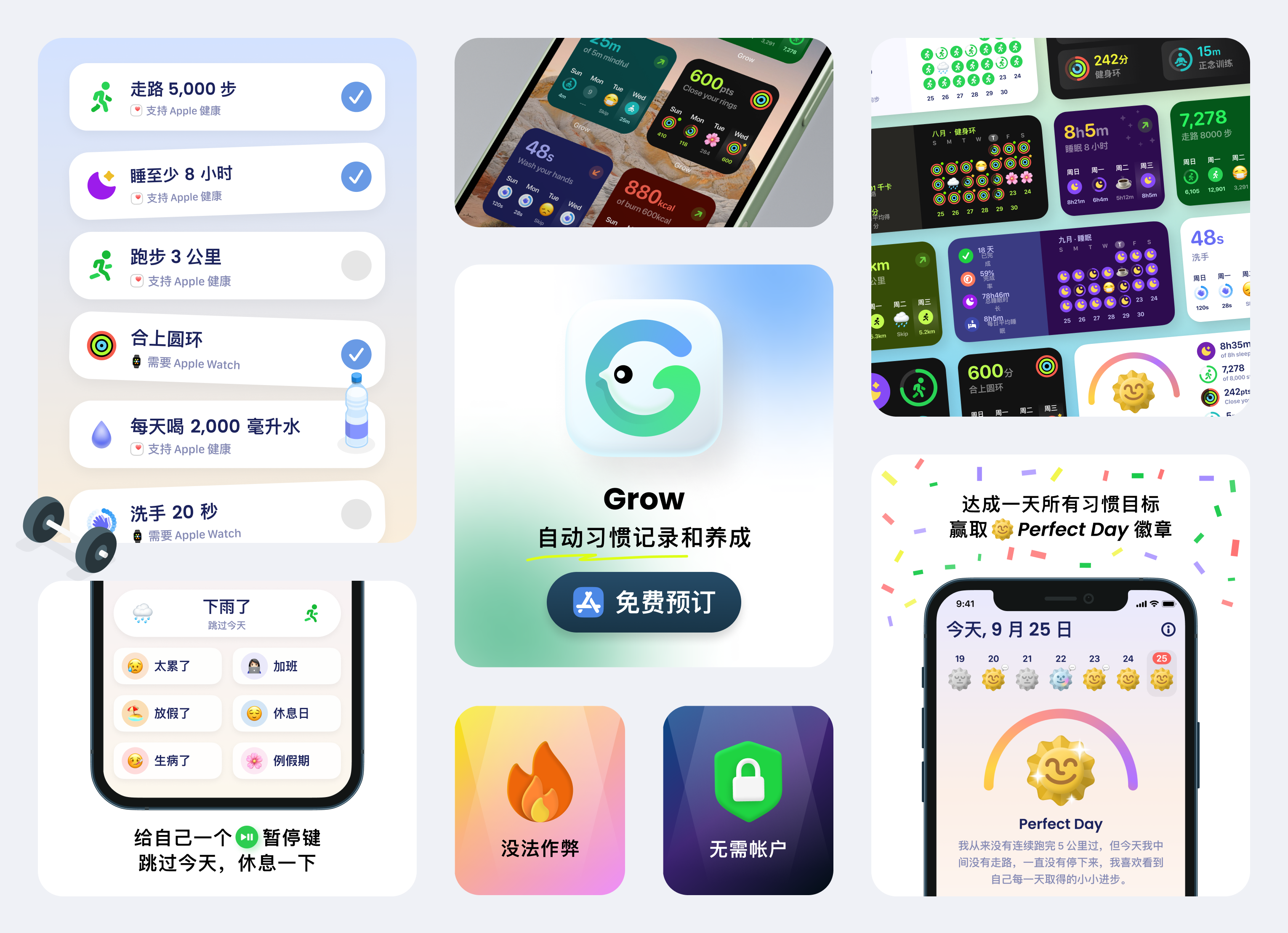 经过了这几个月的内测,和 race 入职后加快了开发速度,现在终于可以在 App Store 免费预订了,Grow 也将在下周二 8 月 10 日正式发布。并且急中生智,学习 Apple 做了一张卡片。
