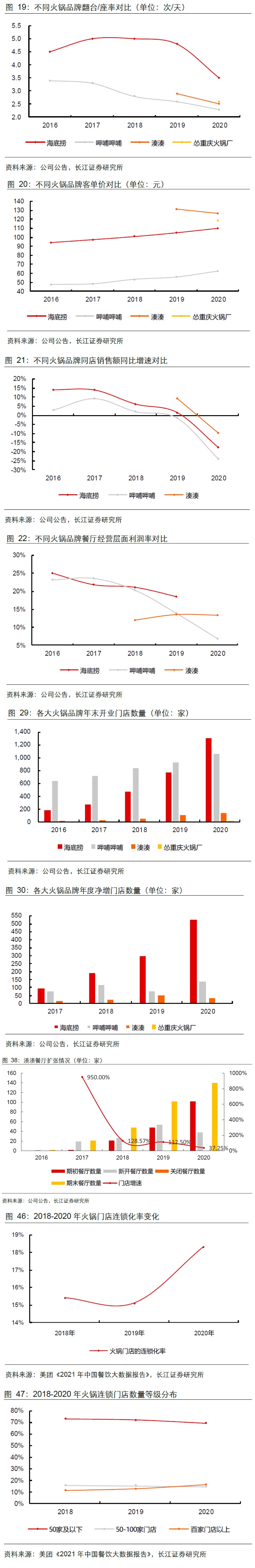 不同火锅品牌翻台率、客单价、销售额、利润率、门店数量、连锁化率等数据对比(图4⃣️)