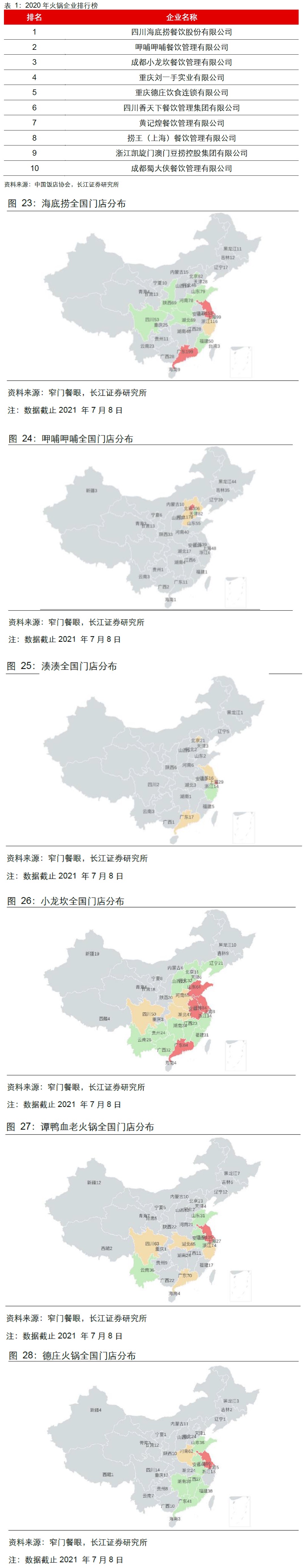 重点火锅企业及其全国门店分布情况(图1⃣️)