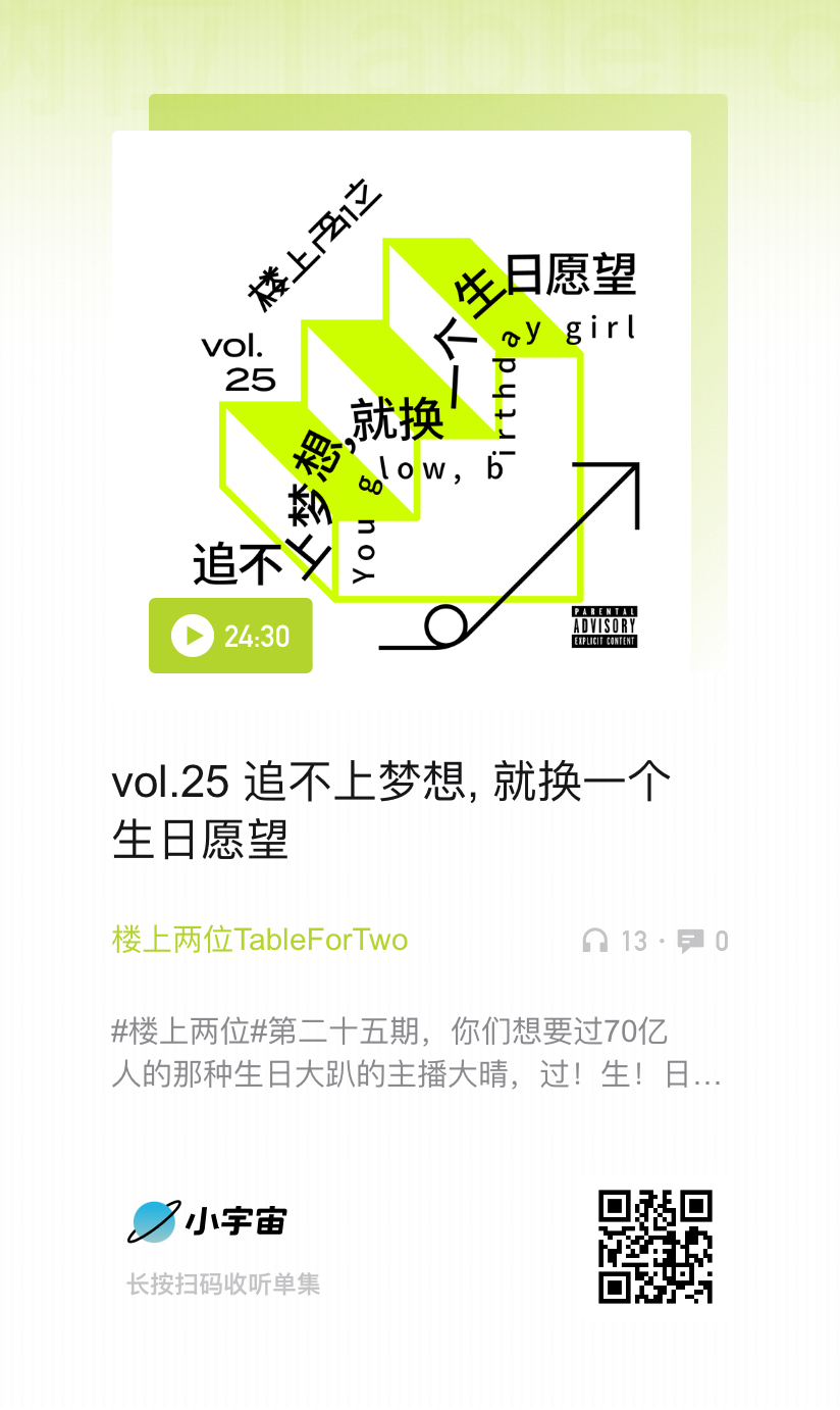 最后,还是祝大晴生日快乐!希望大晴能从播客里找到乐趣、越来越喜欢做播客。希望大晴健健康康,大晴爱的人们也健健康康。希望大晴希望的事情,都一件一件地,迟早发生。