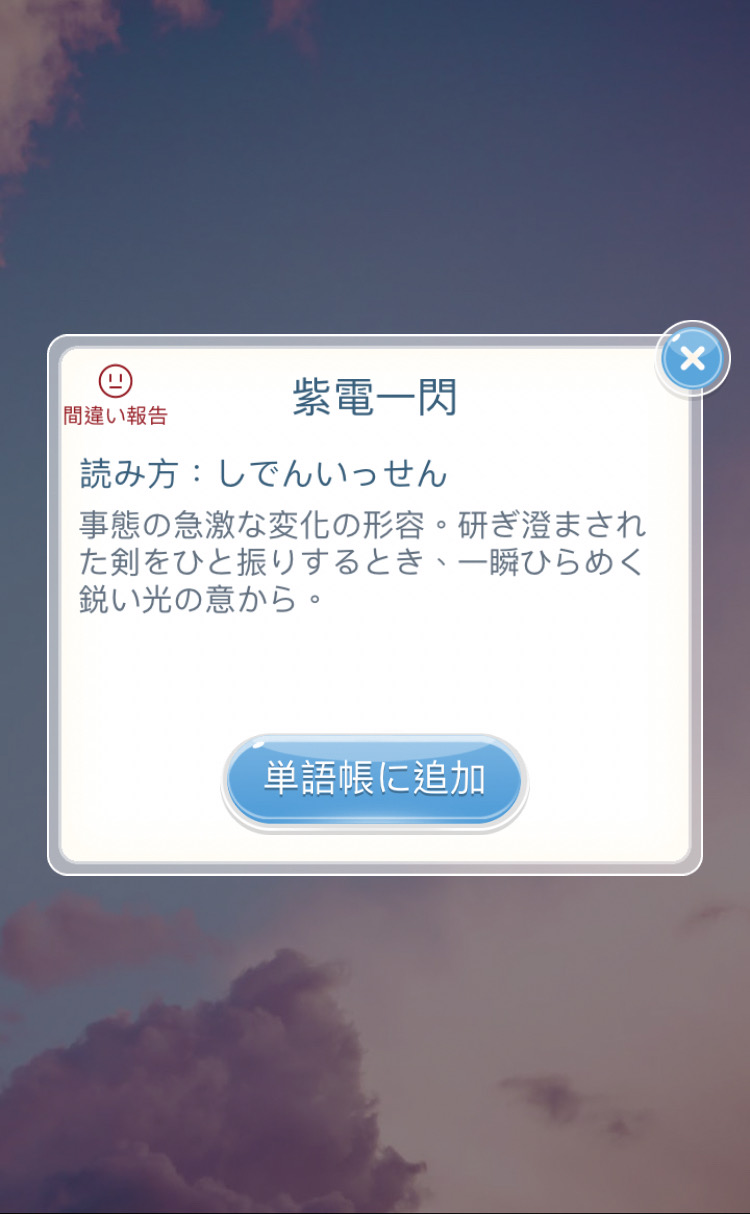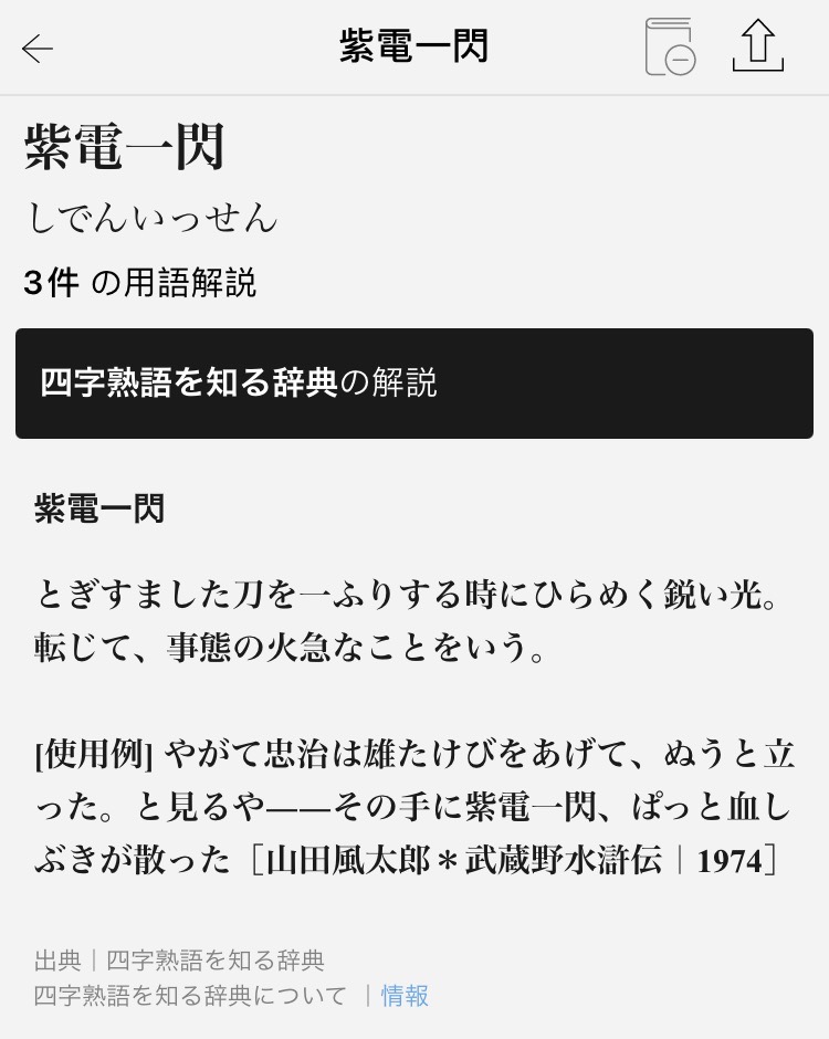 图一是游戏成语消消乐,图二三是大辞林app(很贵,不推荐初学者购买),图四是koto bank辞典(免费,且会明确标注字/词/句的来源出处,有网页版也有app,俺很喜欢它的界面,推荐)。