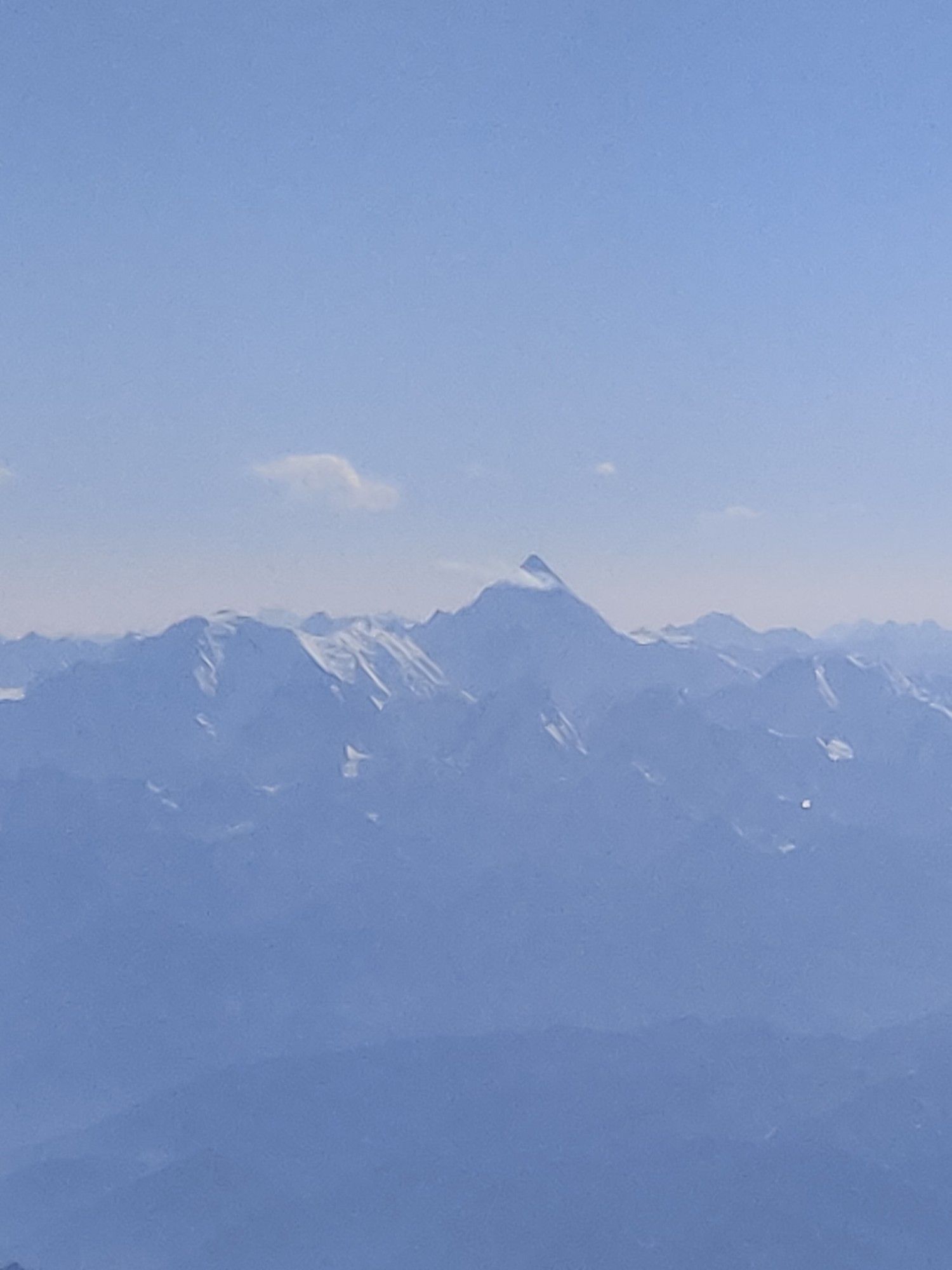 3. 准备长焦镜头或者可以支持长焦的卡片机/手机,没有长焦会很后悔的!喀什-阿里的航线能看到乔戈里峰,但是!巨远!飞在天上看乔戈里峰还是远在天边,这时候只能靠我15年买的卡片机Canon SX710 HS,调到最大变焦才能拍到乔戈里峰。