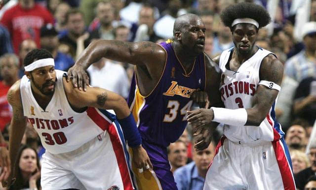 那一年,活塞的拉希德.华莱士和本.华莱士拼尽全力在内线极大的限制了以奥尼尔为首的湖人锋线,为外线争取了非常多的机会。即便是看球晚的人也应该知道奥尼尔是什么级别的球员,2K里流行一句话“有乔选乔,无乔选鲨”,这两人就是迈克尔.乔丹和人称“鲨鱼”的沙奎尔.奥尼尔,在NBA现有的历史里,没有哪一位中锋的统治力能完全超过奥尼尔。