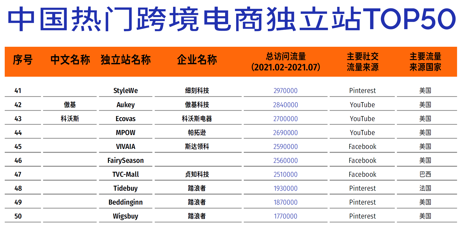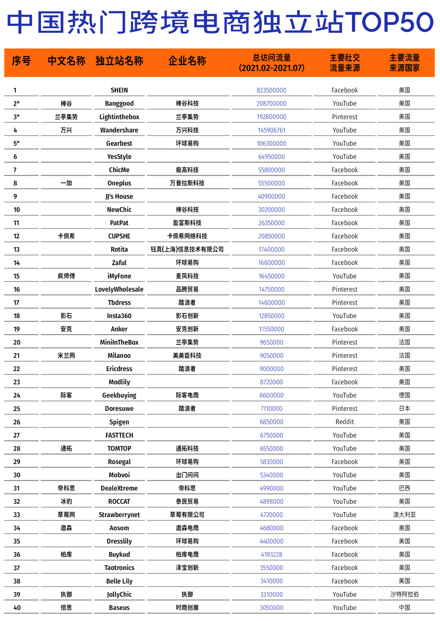中国热门跨境电商独立站top50(按名次排列,图4⃣️-5⃣️)