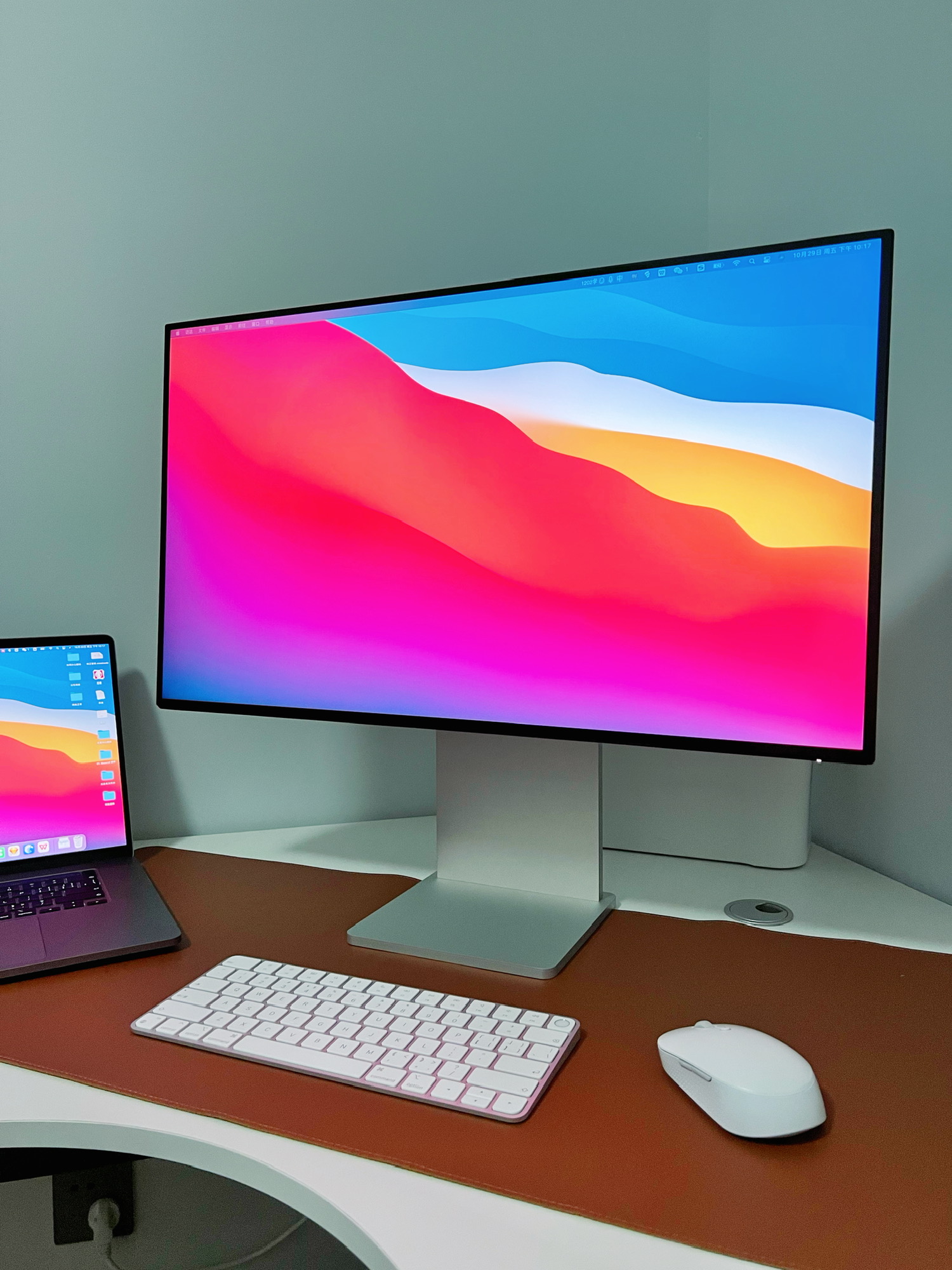 显示器本体就是之前买来放公司的飞利浦279C9…颜色还是很接近Mac的…并且悬浮屏幕无包边,正面无Logo…很适合冒充高端显示器😹