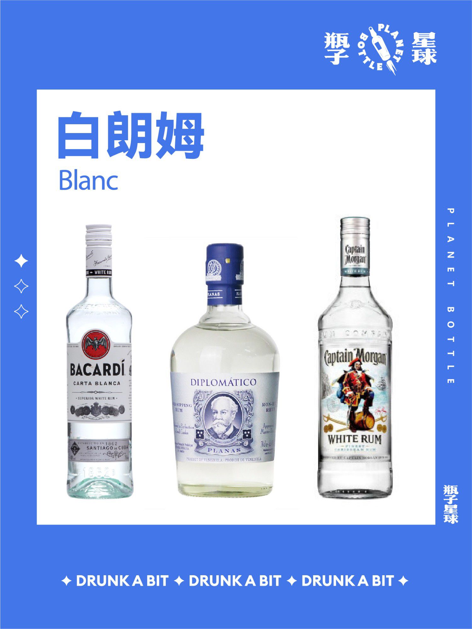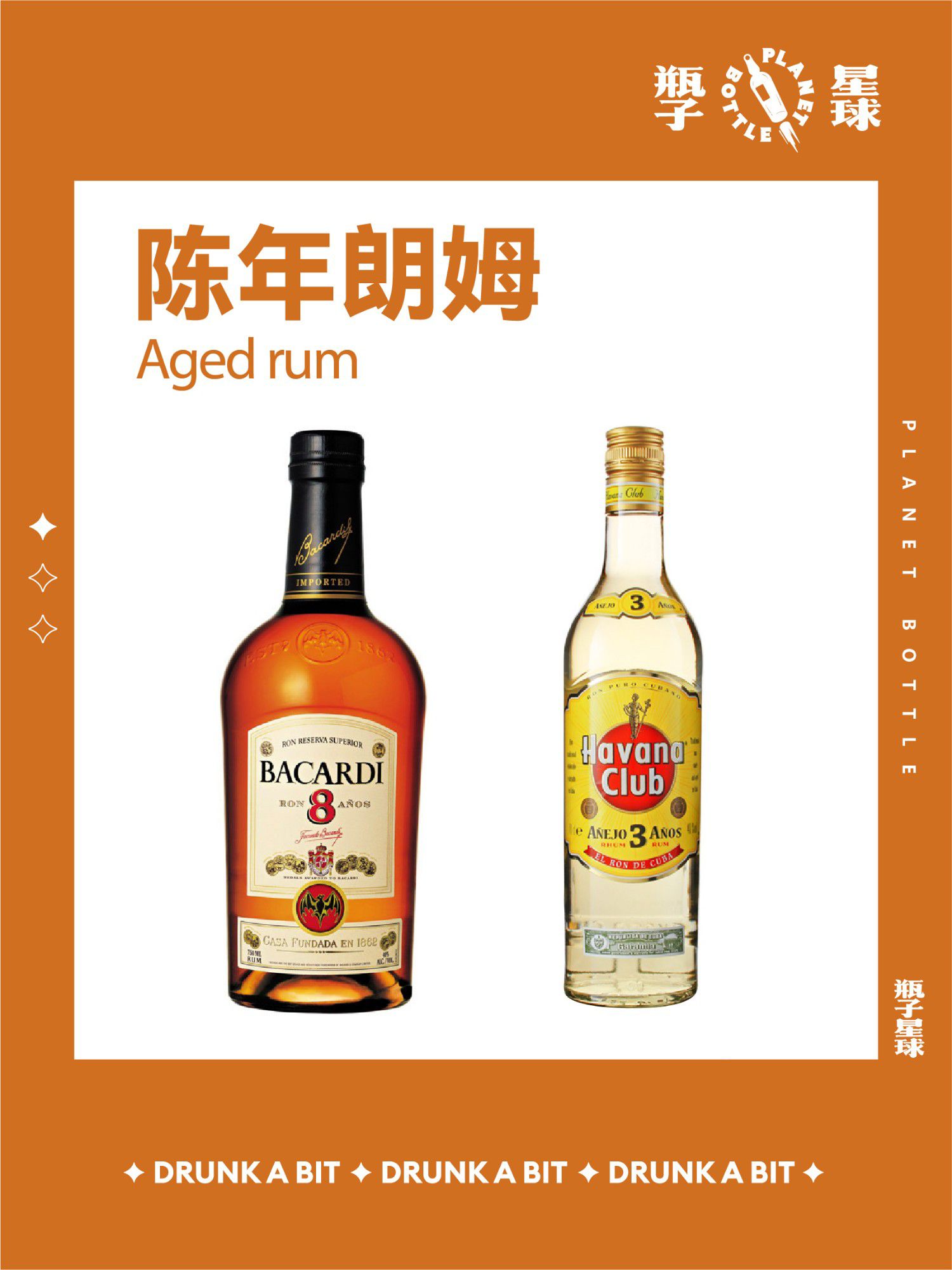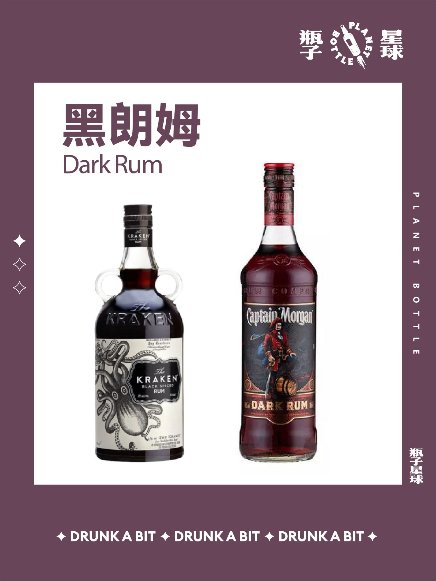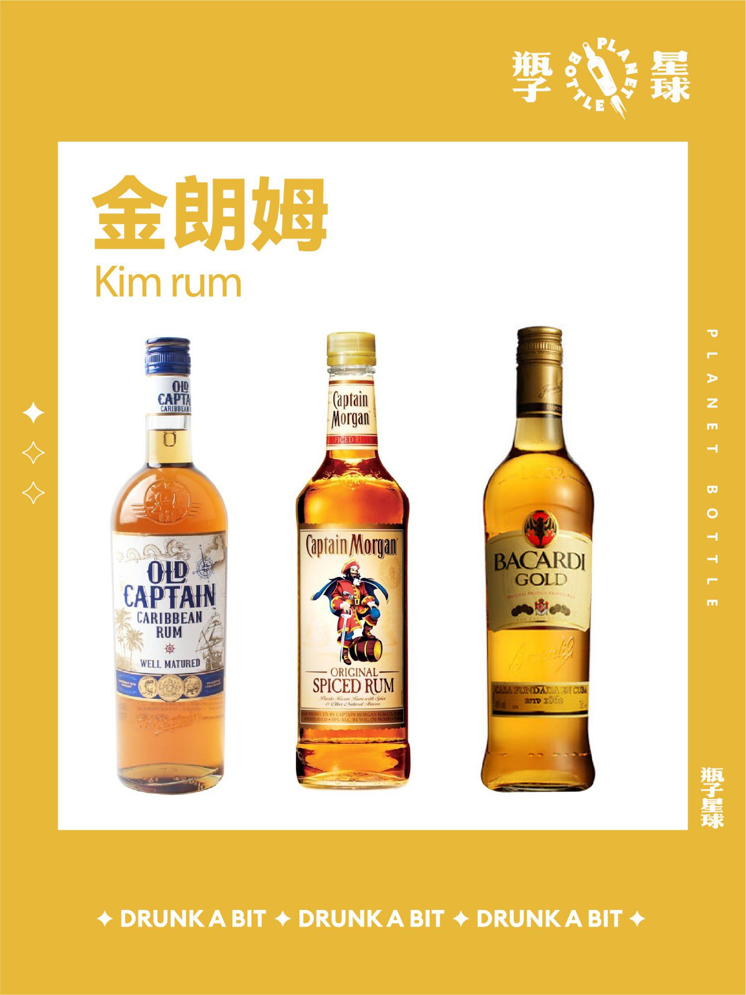 常见朗姆品牌:百加得、哈瓦那俱乐部、摩根船长等。