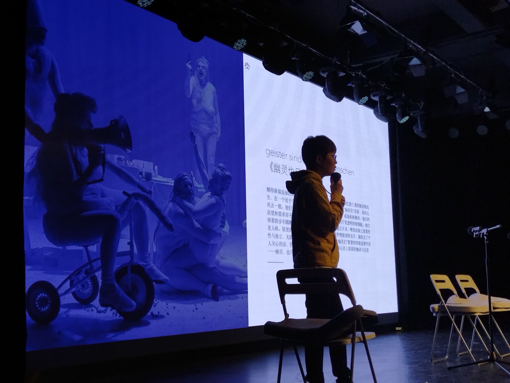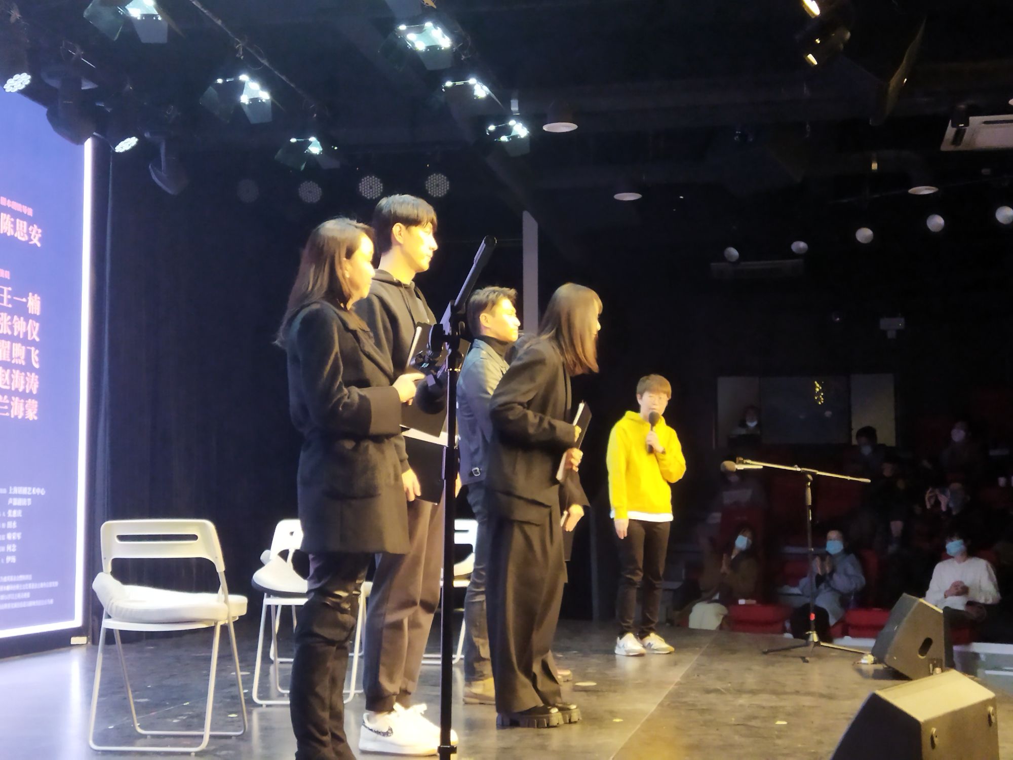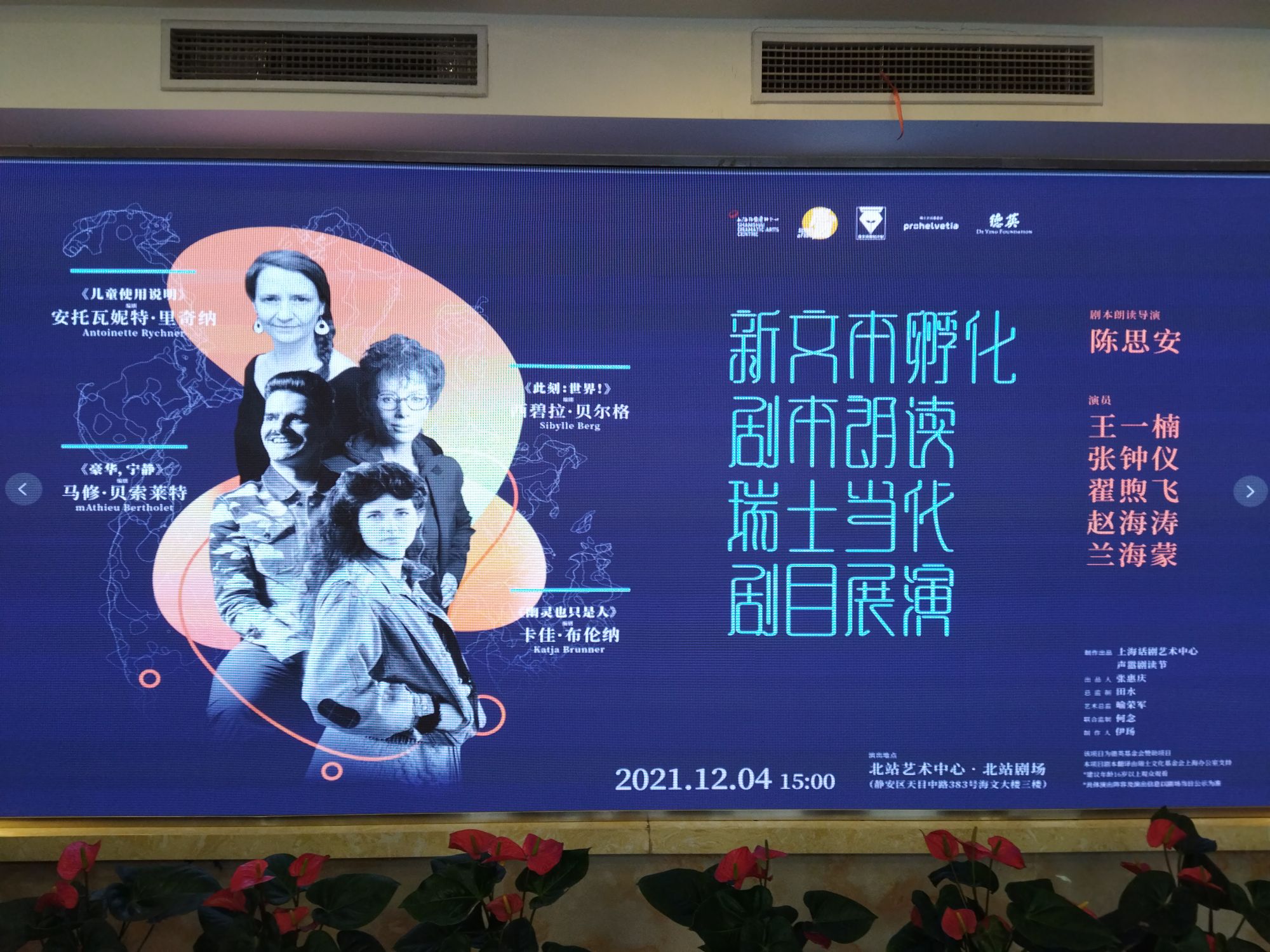 下午参加了陈思安和上海话剧艺术中心合作的新文本孵化剧本朗读,四个瑞士当代剧目的章节搭配五位中心演员的朗读,感受到了瑞士当代戏剧文本的宽阔和尖锐视角。