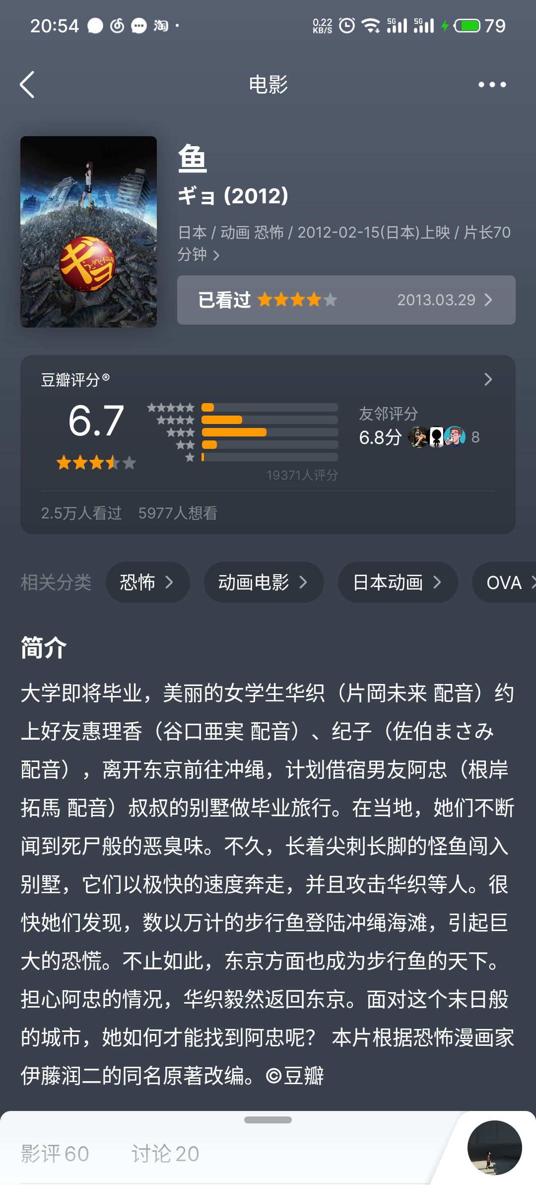 恐怖漫画警告(终于看完整漫画了,翻页之后的震撼一如既往,没想到还有贴纸周边!第一次看电影版的鱼还是在2013年,没想到还是漫画更强一点。