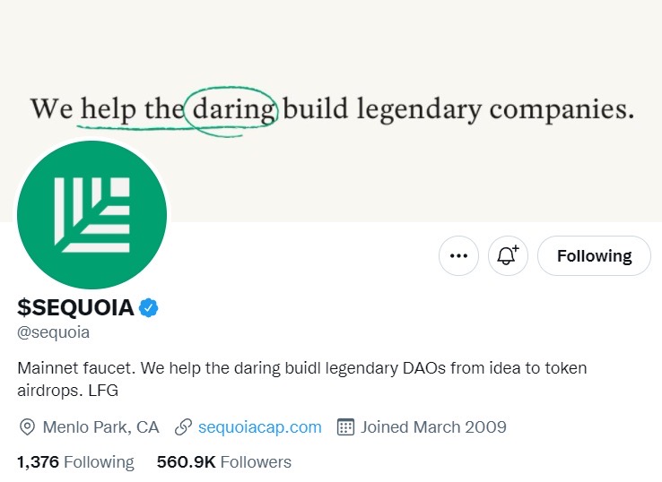 红杉资本官推改简介,怎么看怎么像在玩梗,不过玩梗确实是 web3 必备技能了