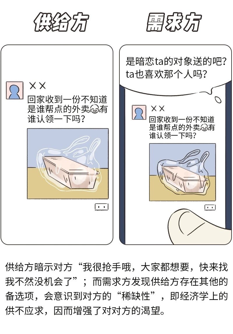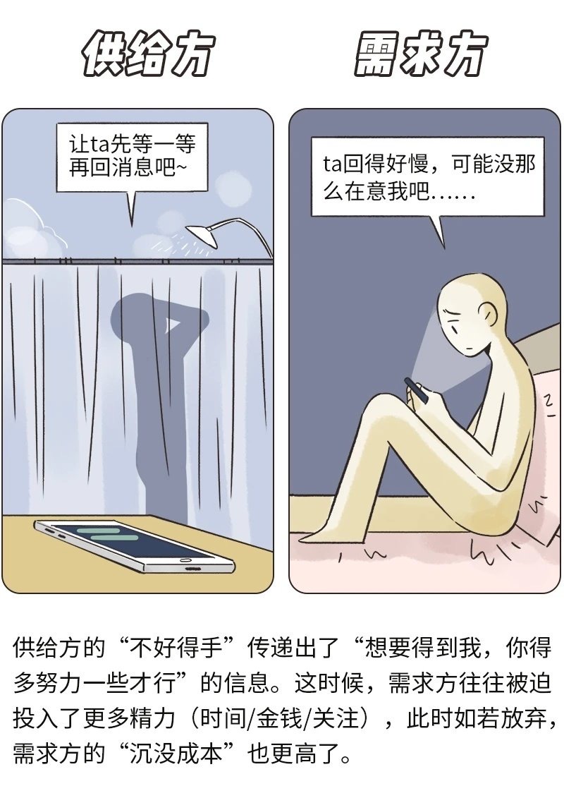 Play-Hard-to-Get有些时候确实是好用的。人们更想要那些更有挑战性、需要耗费ta们更多心思的目标——我们降低自己的可得性时,我们在对方眼里的吸引力会上升。 我们也可以用经济学的供需原理来解释(如图2、3)。不过,以上都是理论层面上的分析,现实操作又是另一回事——