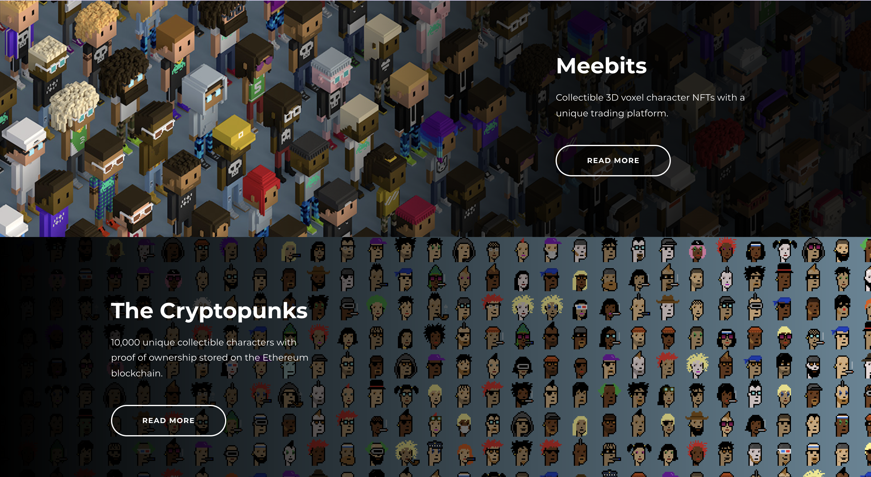 CrypotPunk 背后的工作室是 Larva Labs,NFT 领域的 OG,代表系列除了 Punk;还有第一个完全链上的生成艺术 Autoglyphs;赠送给 Punk 持有者总量 2w个快跌成稳定币的Meebits,在 Clonex 横空出世之前是 3D avatar 类 NFT 的老大;此外还有一些和谷歌安卓合作的小工具 app,影响力太小了不谈。
