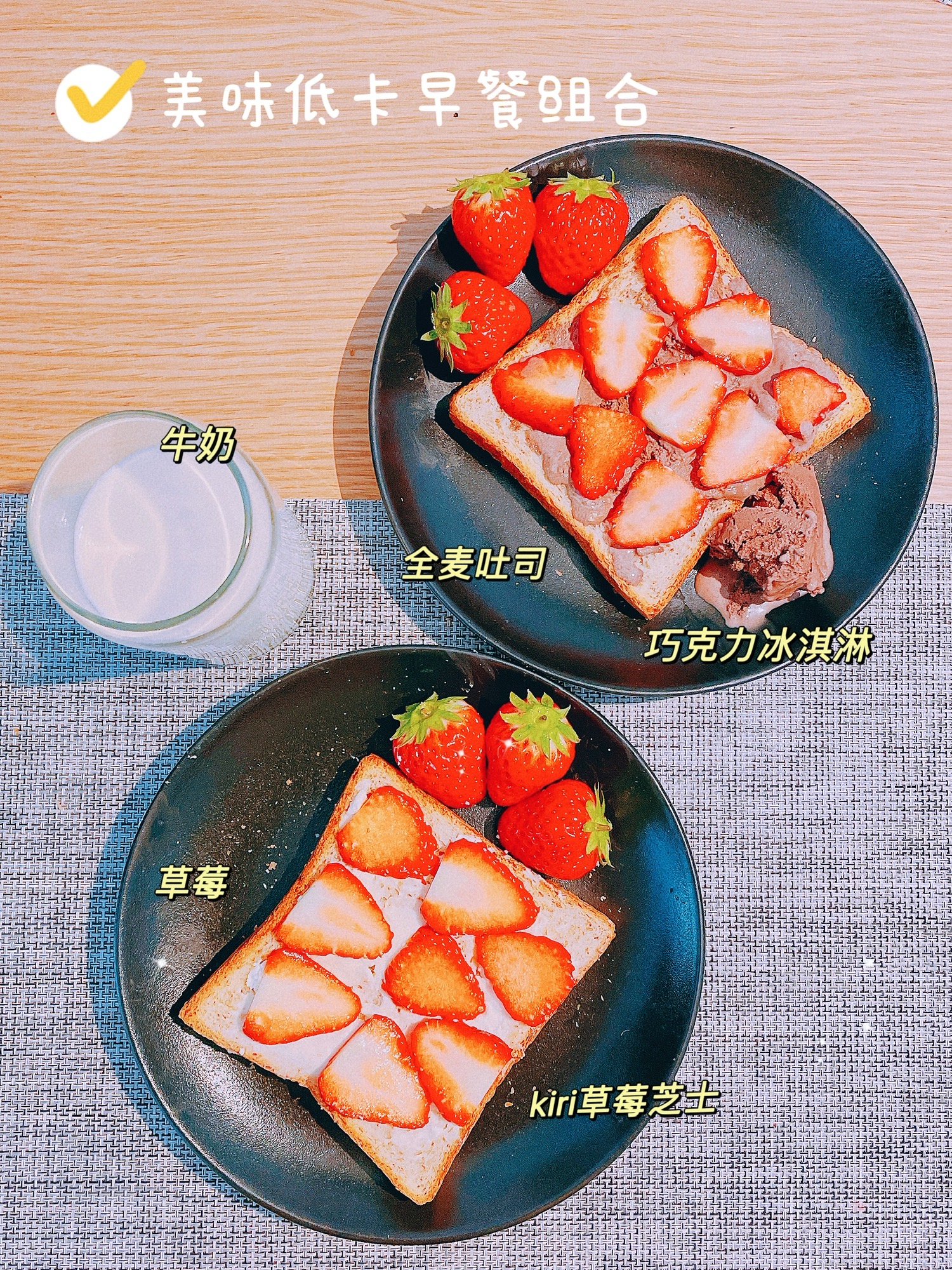 1、烤得脆脆的吐司加上kiri草莓芝士感觉比Tims的贝果好吃多了🥰再配上新鲜草莓!甜软加倍😋