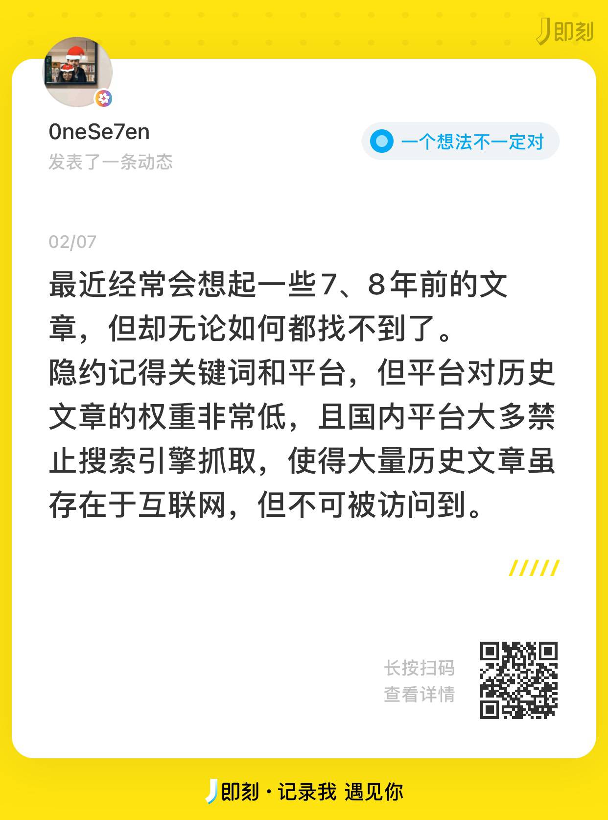 search.marginalia.nu一个非常酷的搜索引擎,索引了大量个人网站,有随机模式,能搜到大量在2010年甚至更早的页面。