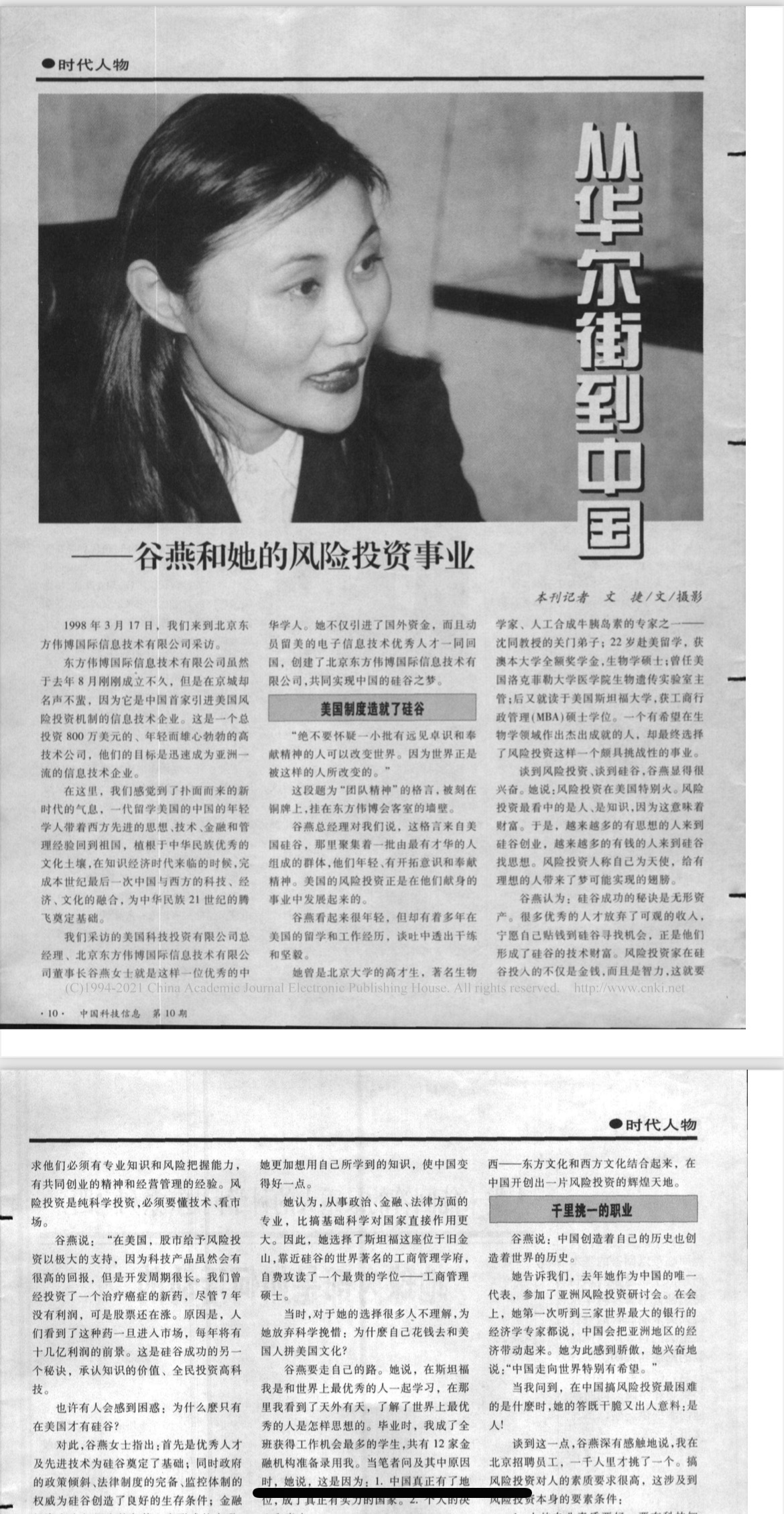 实际上,二十年前就已经有人采访过了:“她告诉我们,去年她作为中国的唯一代表,参加了亚洲风险投资研讨会。”