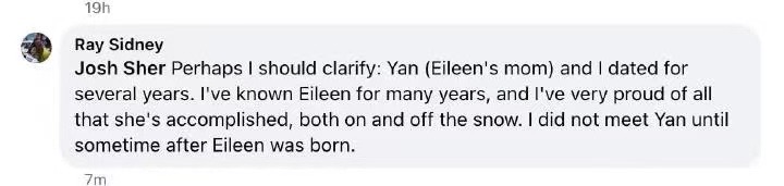 谷爱凌的网传“谷歌5号员工父亲”澄清来了(图一)😂😂😂: Ray Sidney和谷爱凌母亲是约会过(dated for several years),但是在爱凌出生之后才认识;和爱凌熟识,并为她的成就感到骄傲(解释了为啥把爱凌合照放头像)。
