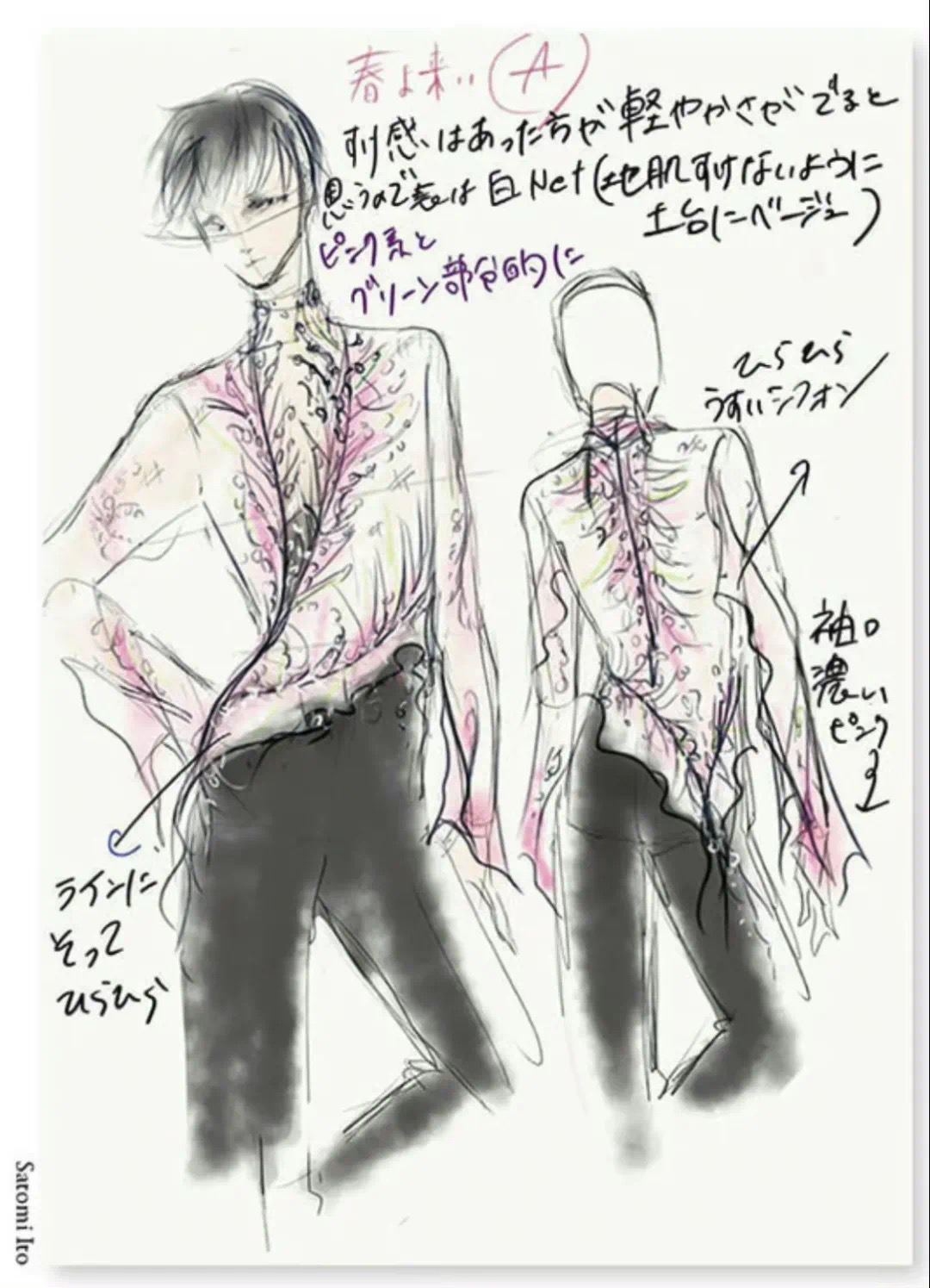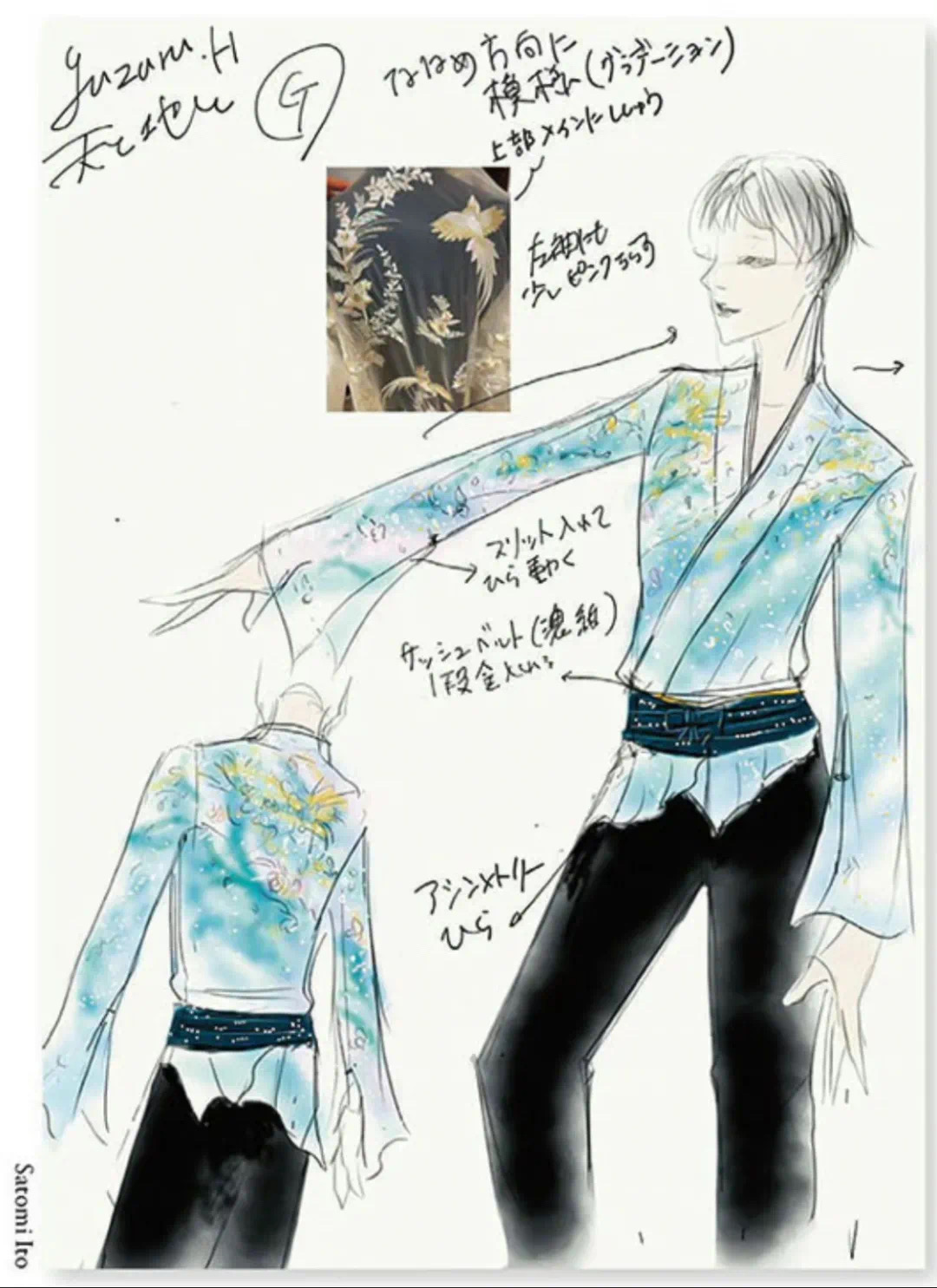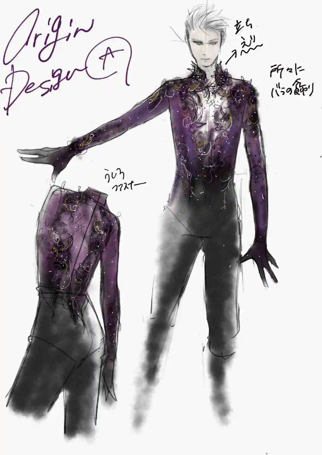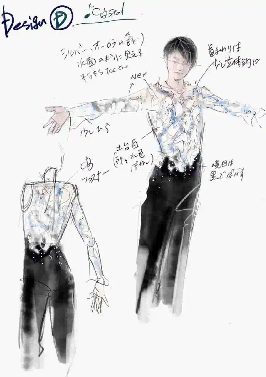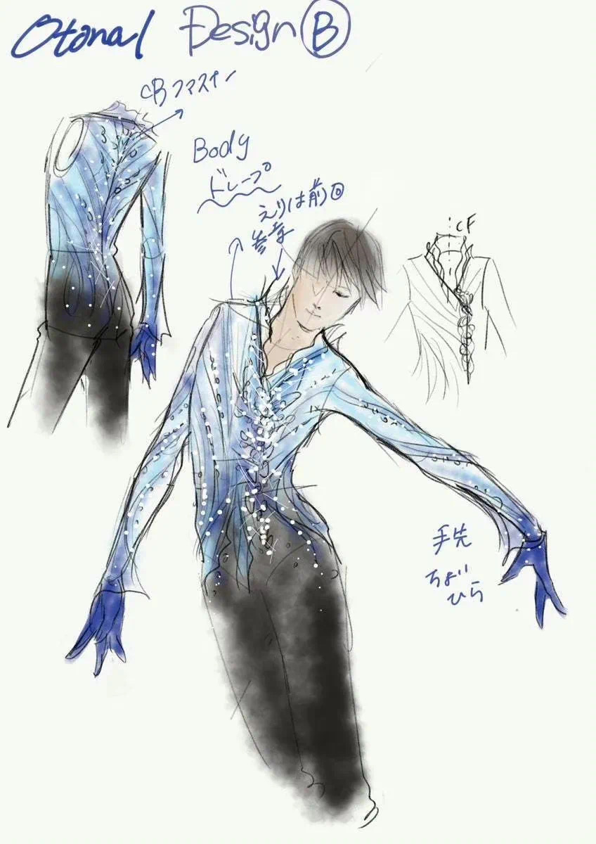 看了一下羽生结弦的比赛服手稿和细节。