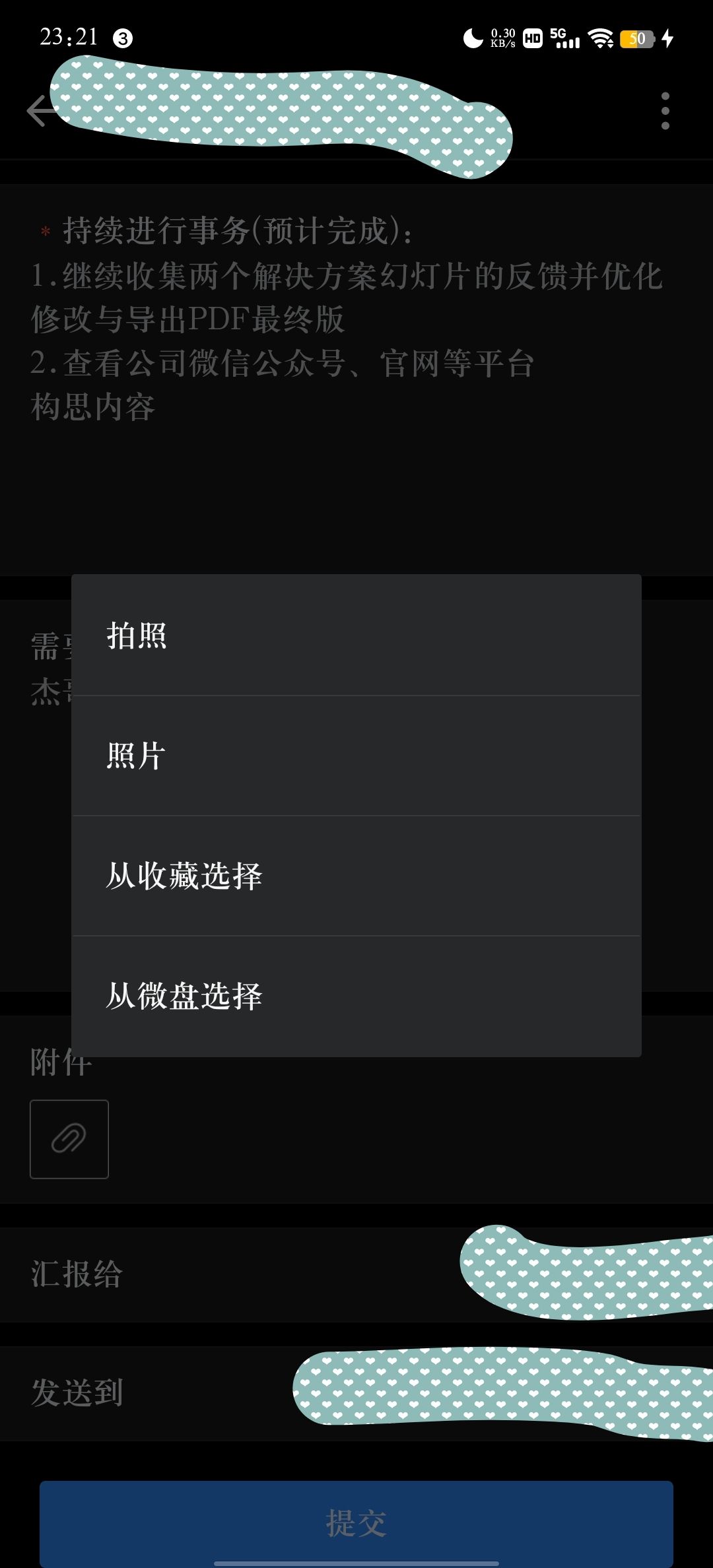 就拿、在写汇报,添加附件的时候来说: